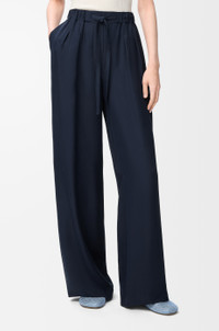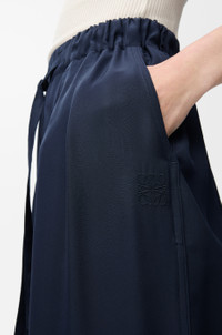 Trousers in lightweight matte silk crepe. - Relaxed fit, regular length - Mid waist, straight leg - Elasticated waist with drawstring - Slash pockets, buttoned rear flap pocket - Anagram embroidery placed at the front Colour: Navy Blue Main material: Silk Weight: 0.25 kg Made in: Italy Materials & care Main Material: 100% silk