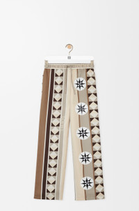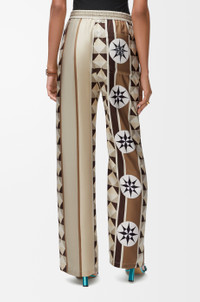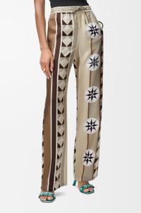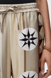 Trousers in lightweight washed silk twill featuring an exclusive compass print with a placed Anagram. - Relaxed fit, long length - Mid waist, straight leg - Elasticated waist with drawstring - Seam pockets, rear patch pocket Colour: Beige/Multicolor Main material: Silk Weight: 0.1 kg Made in: Italy