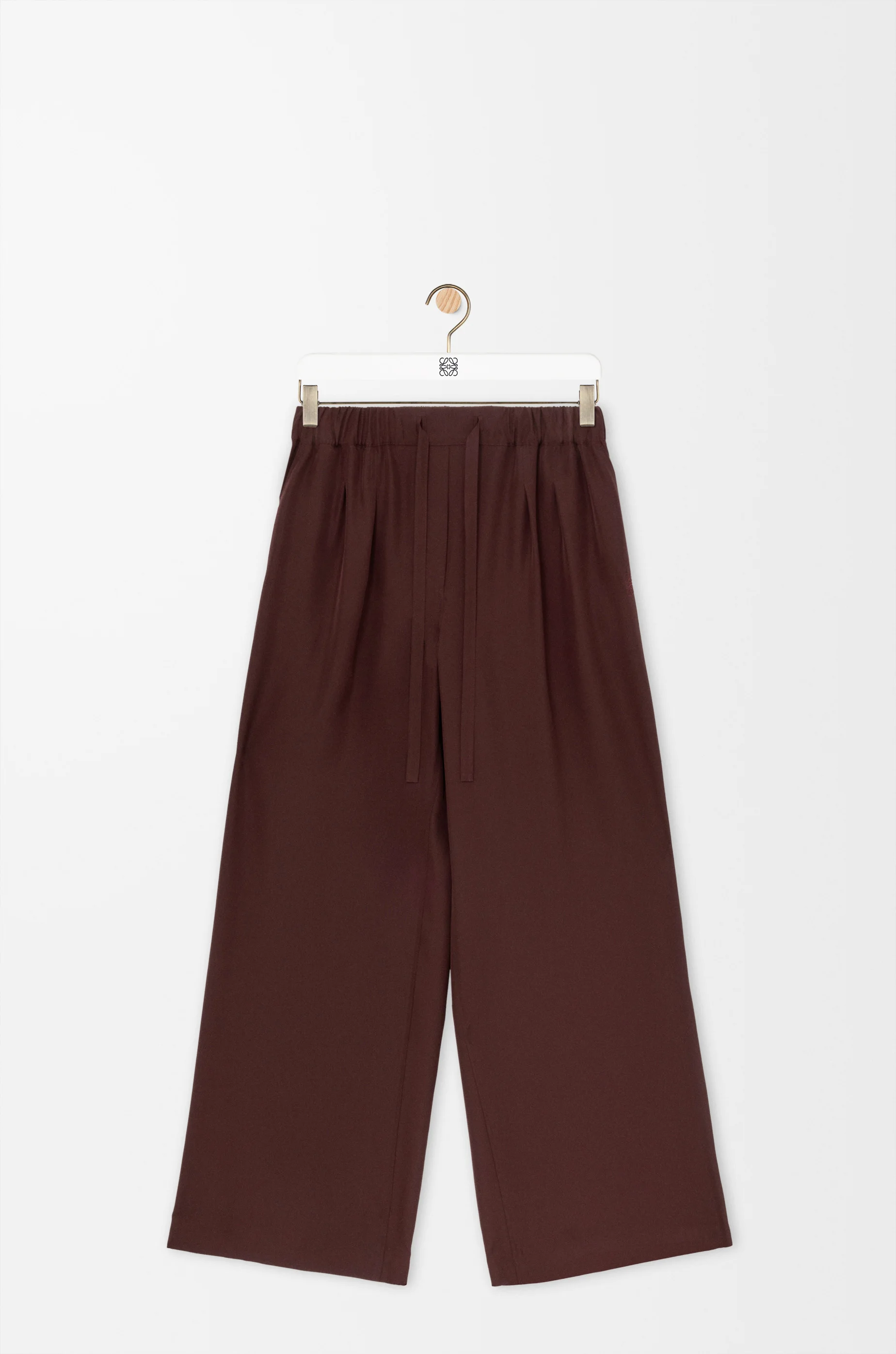 Trousers in lightweight matte silk crepe. - Relaxed fit, regular length - Mid waist, straight leg - Elasticated waist with drawstring - Slash pockets, buttoned rear flap pocket - Anagram embroidery placed at the front Colour: Burgundy Main material: Silk Weight: 0.25 kg Made in: Italy Materials & care Main Material: 100% silk