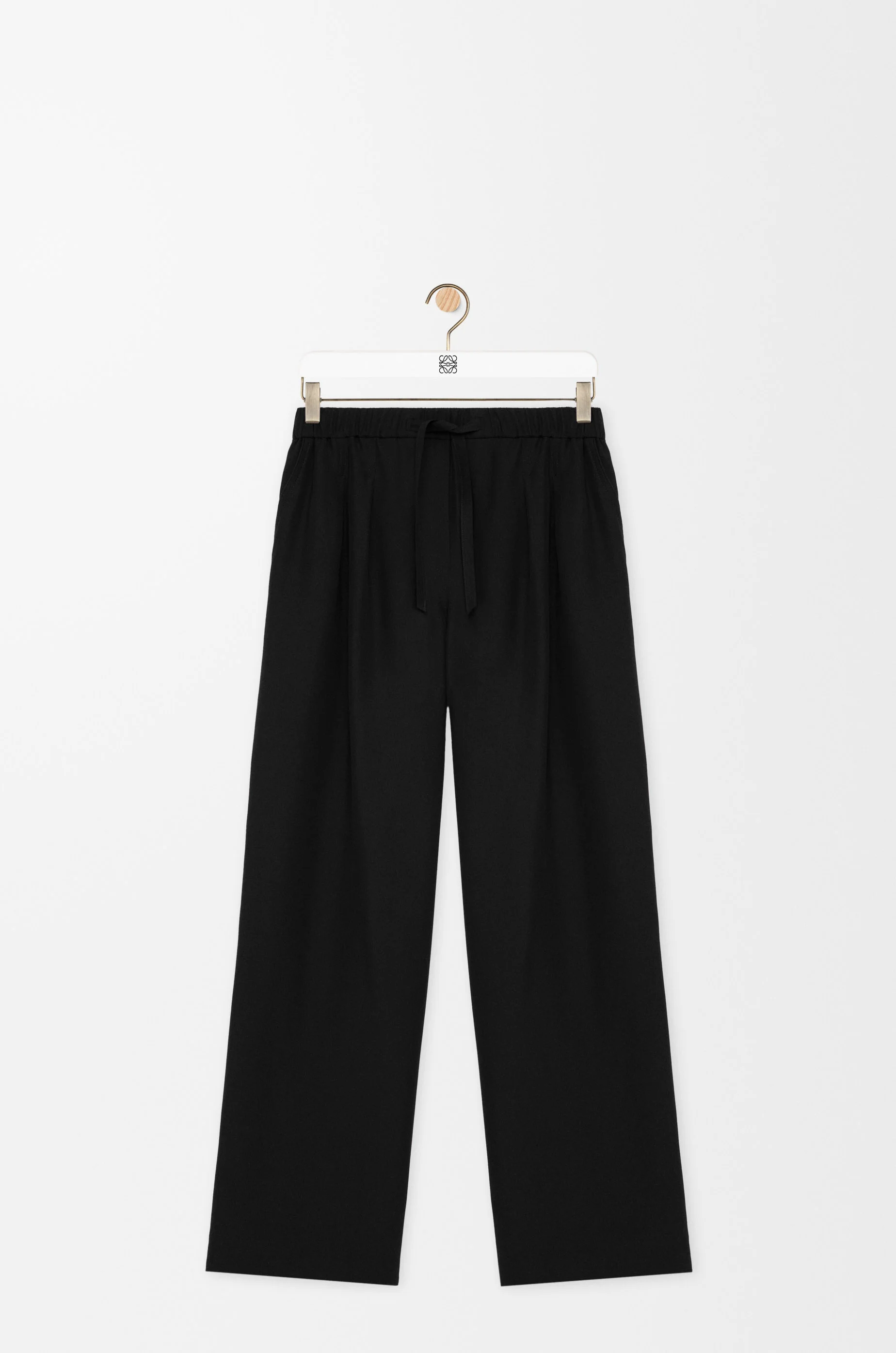 Trousers in lightweight matte silk crepe. - Relaxed fit, regular length - Mid waist, straight leg - Elasticated waist with drawstring - Slash pockets, buttoned rear flap pocket - Anagram embroidery placed at the front Colour: Black Main material: Silk Weight: 0.25 kg Made in: Italy Materials & care Main Material: 100% silk