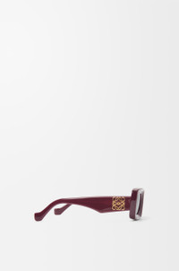 Rectangular sunglasses in acetate with a Loewe Anagram in a gold finish on the arm. - International fit - UVA/UVB protection Details - Colour : Burgundy - Main material : Acetate - Weight : 0.054 kg - Height (cm) : 4.37 - Width (cm) : 14.03 - Height (inch) : 1.7 - Width (inch) : 5.5 - Lens size (cm) : 4.6 - Lens size (inches) : 1.8 - Bridge size (cm) : 2.2 - Bridge size (inches) : 0.9 - Temple size (cm) : 14 - Temple size (inches) : 5.5 - Model ID : G736270X18 - CIL : - 0011198751 - Made in : Italy