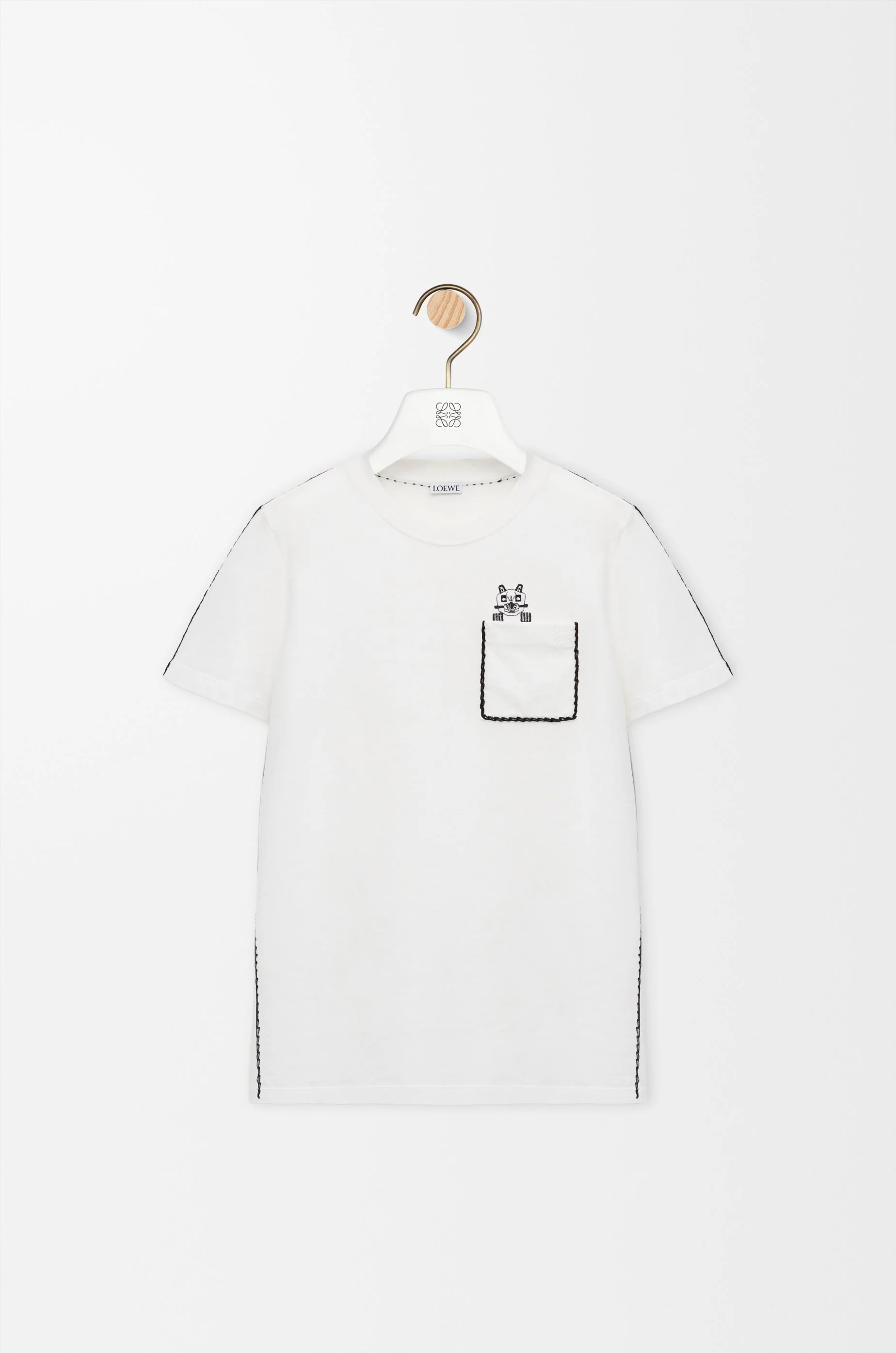 T-shirt in lightweight cotton featuring a Futurist cat embroidery on the chest and hand-embroidered piping. This T-shirt is inspired by Louis Wain's "Futurist Cats" porcelain vase series. - Regular fit, regular length - Crew neck - Anagram embroidery placed on the chest pocket Colour: White Main material: Cotton Weight: 0.16 kg Made in: Portugal Materials & care Main Material: 100% cotton