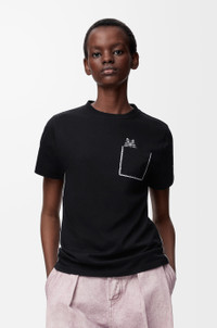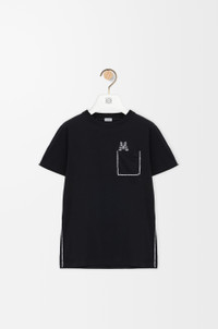 T-shirt in lightweight cotton featuring a Futurist cat embroidery on the chest and hand-embroidered piping. This T-shirt is inspired by Louis Wain's "Futurist Cats" porcelain vase series. - Regular fit, regular length - Crew neck - Anagram embroidery placed on the chest pocket Colour: Black Main material: Cotton Weight: 0.16 kg Made in: Portugal Materials & care Main Material: 100% cotton
