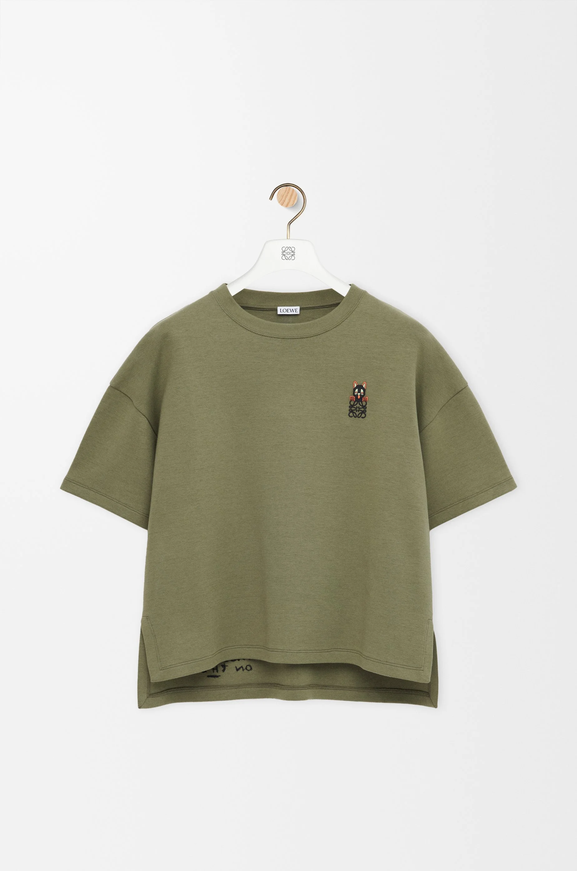 T-shirt in medium-weight compact cotton blend featuring a Futurist cat embroidery on the chest and an embroidered lettering at the back. This T-shirt is inspired by Louis Wain's "Futurist Cats" porcelain vase series. - Regular fit, regular length - Crew neck - Split sides Colour: Khaki Green Main material: Cotton/polyamide Weight: 0.21 kg Made in: Portugal Materials & care Main Material: 80% cotton 20% polyamide