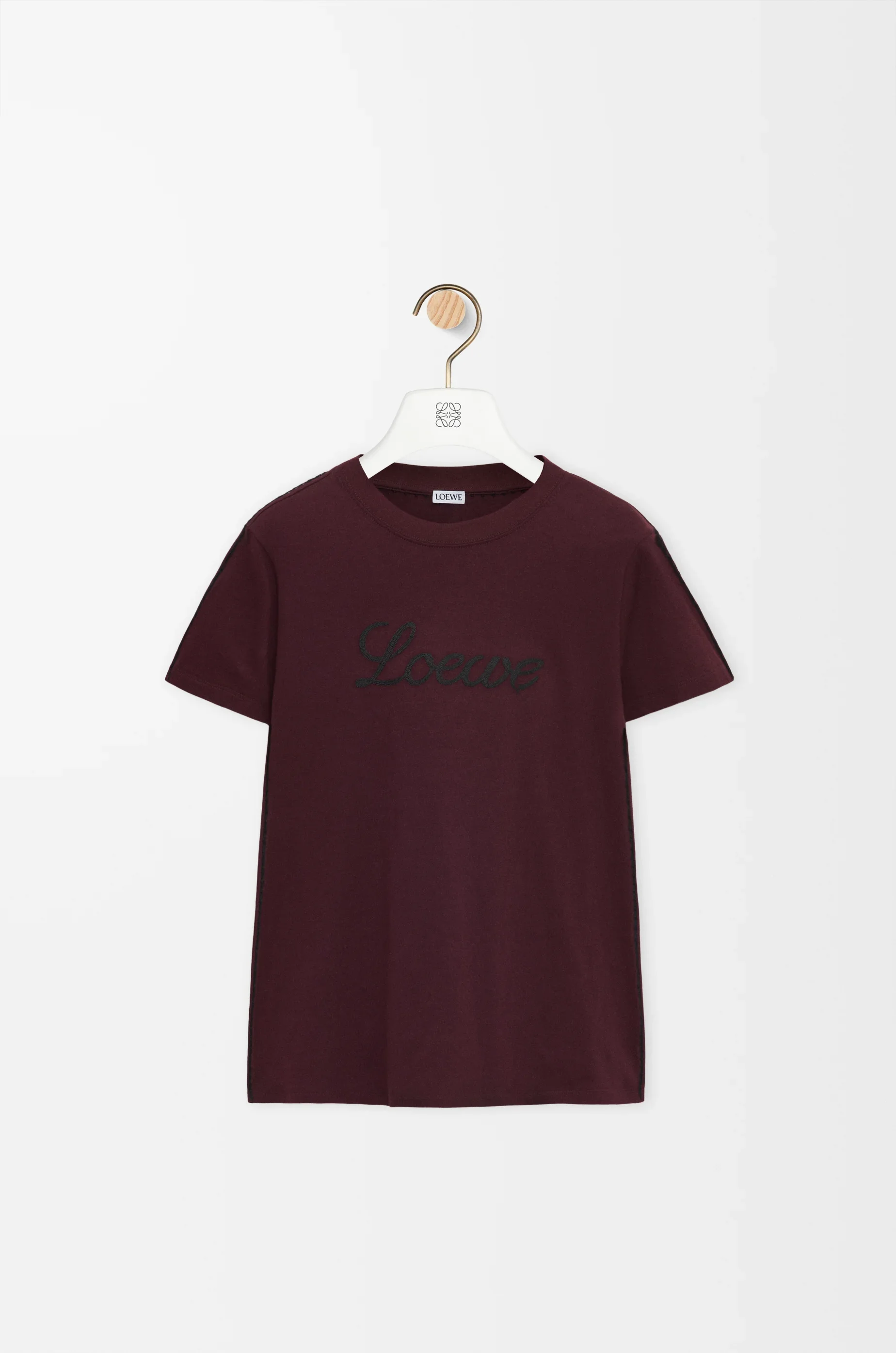 T-shirt in lightweight cotton featuring a LOEWE embroidery on the chest and hand-embroidered piping. - Relaxed fit, regular length - Crew neck Colour: Burgundy Main material: Cotton Weight: 0.13 kg Made in: Portugal Materials & care Main Material: 100% cotton