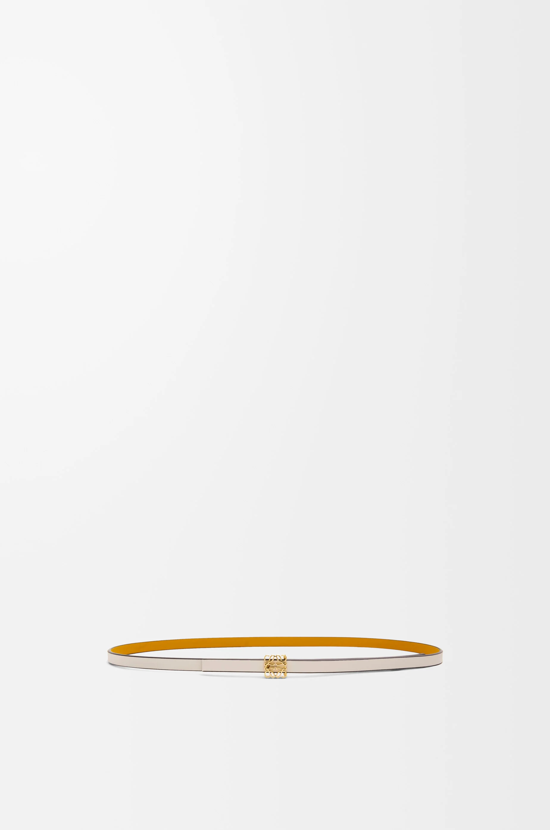 Reversible belt in smooth calfskin with a polished Anagram cube buckle. - 1cm wide - Five holes regulation Details - Colour : Soft White/Sunflower /Gold - Metallic colour : Gold - Main material : Smooth Calf - Weight : 0.03 kg - Depth (cm) : 1 - Depth (inch) : 0.4 - Model ID : E61911BX02 - Made in : Spain