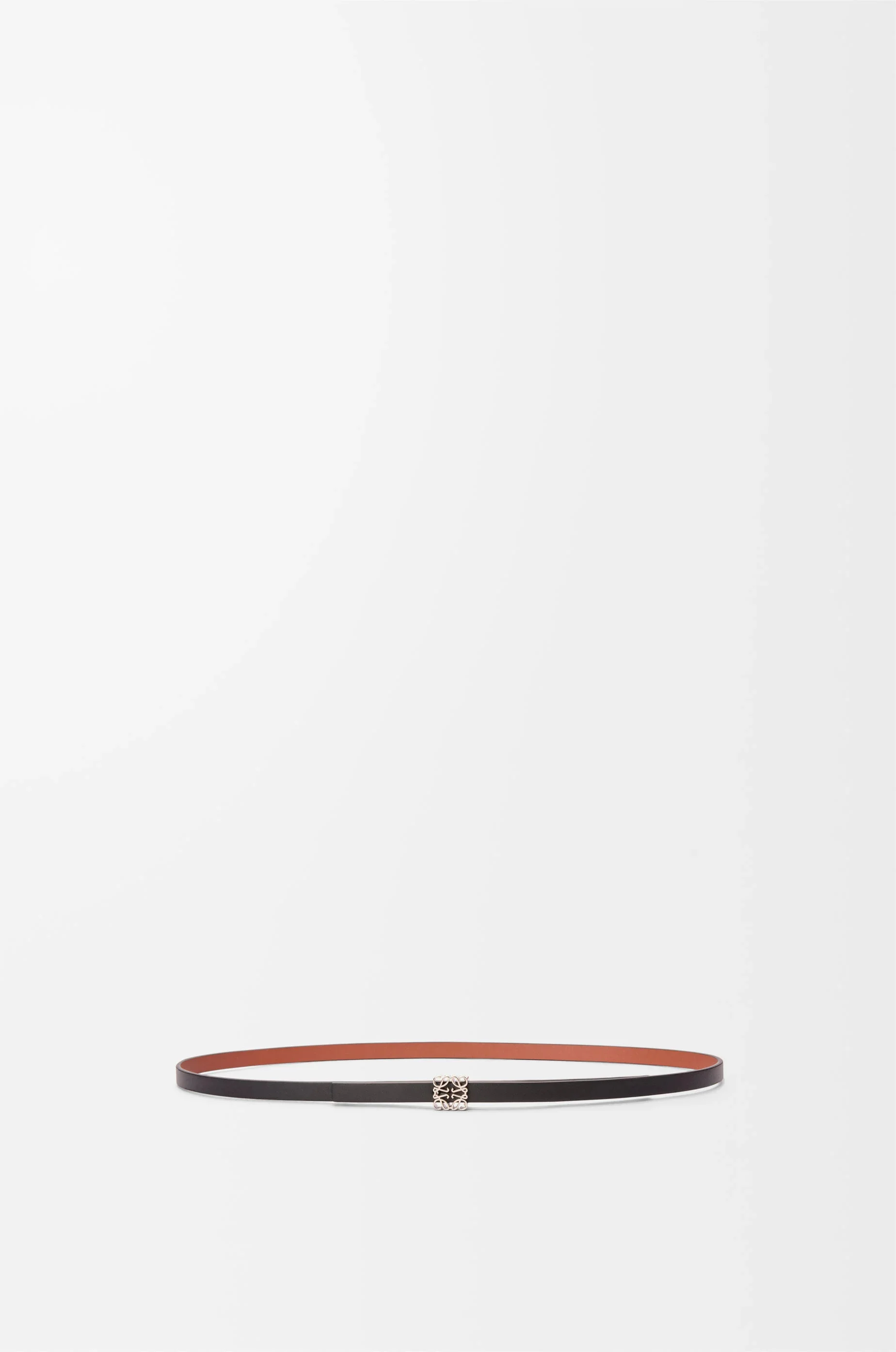 Reversible belt in smooth calfskin. - Anagram Cube buckle - Anchor buckle - 1cm wide - Five holes regulation Details - Colour : Black/Tan/Palladium - Metallic colour : Palladium - Main material : Smooth Calf - Weight : 0.03 kg - Depth (cm) : 1 - Depth (inch) : 0.4 - Model ID : E82111BX01 - Made in : Spain