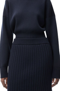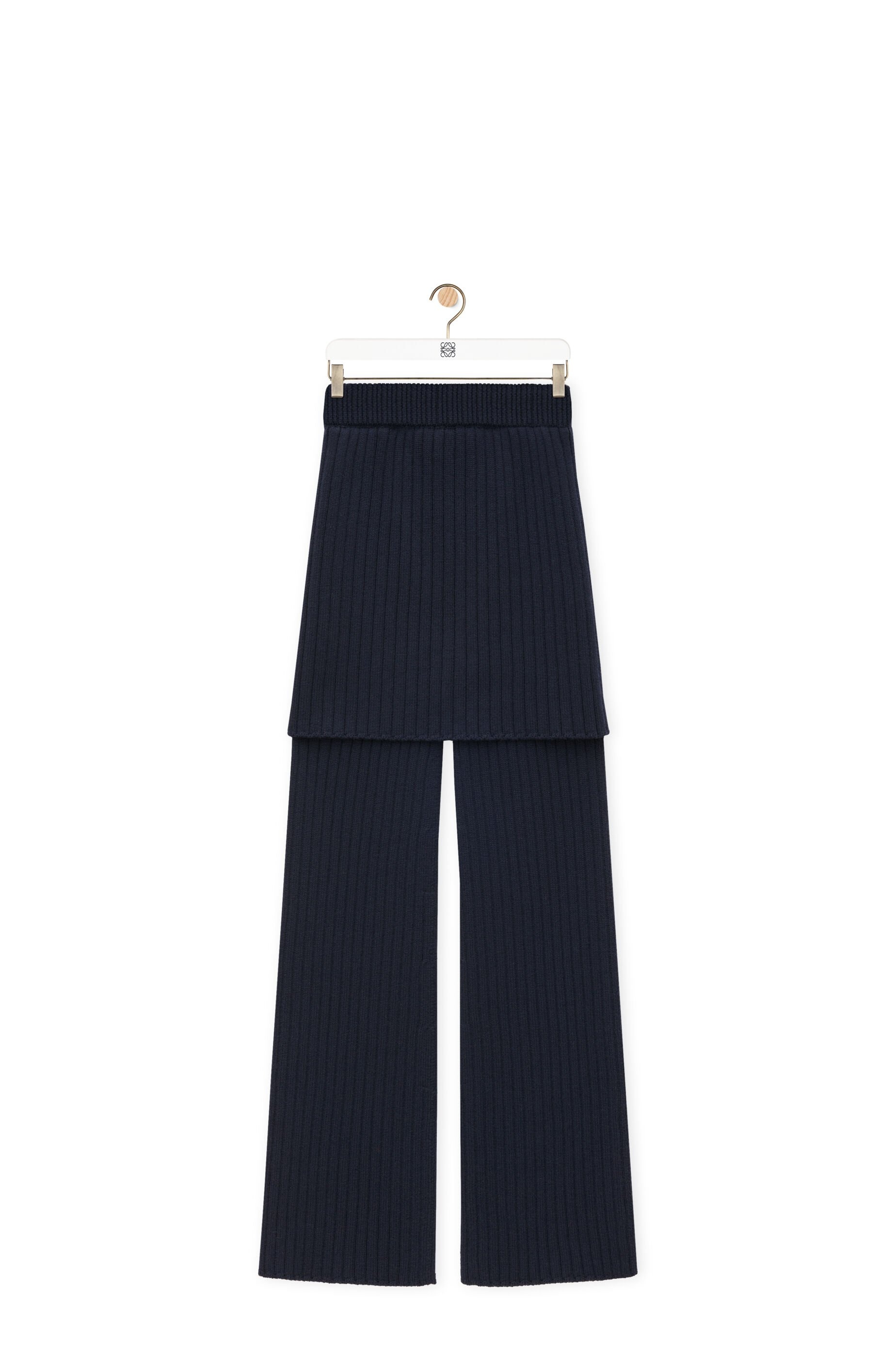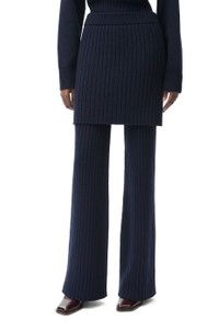 Trousers crafted in medium-weight wool. - Mixed rib knit - Slim fit - Regular length - Mid waist - Flared leg - Layered skirt-trouser construction - Elasticated waist Details - Colour : Navy Blue - Main material : Wool - Weight : 1.4 kg - Model ID : S540Y1MK01 - Made in : Italy