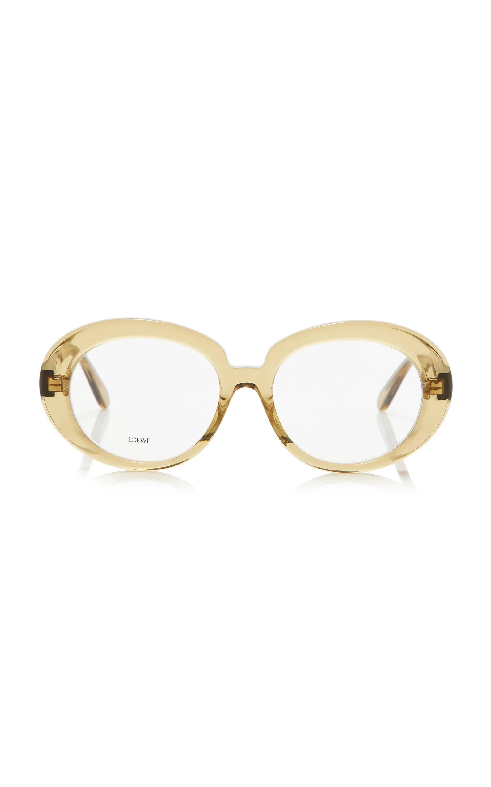 Loewe's eyewear is defined by its contemporary silhouettes. Made in Italy, the vintage-inspired frames are crafted from the highest quality materials and add effortless glamour to any look. Crafted in Italy from translucent acetate, these glasses have chunky round frames decorated with the house's moniker at the temples. Store them in the accompanying leather case to keep them pristine. PRODUCT DETAILS - Composition: acetate - Made in Italy
