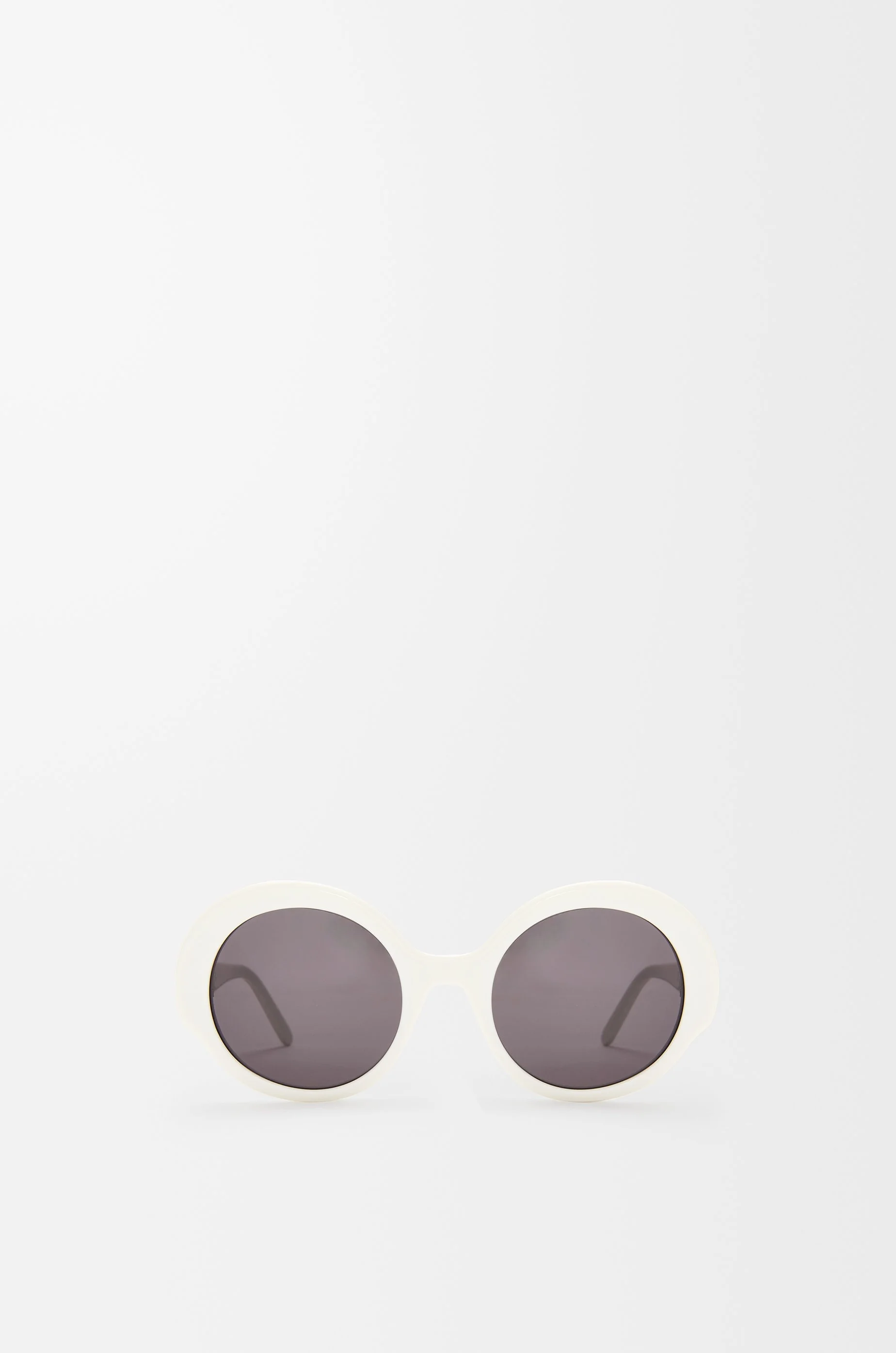 Round-shaped sunglasses in a slim acetate construction with LOEWE in a gold finish on the temple. - International fit - 100% UVA/UVB protection Details - Colour : White/Ivory - Main material : Acetate - Weight : 0.042 kg - Lens size (cm) : 5.2 - Lens size (inches) : 2.0 - Bridge size (cm) : 2.2 - Bridge size (inches) : 0.9 - Temple size (cm) : 14 - Temple size (inches) : 5.5 - Model ID : G735SUNX07 - CIL : - 0011061389 - Made in : Italy