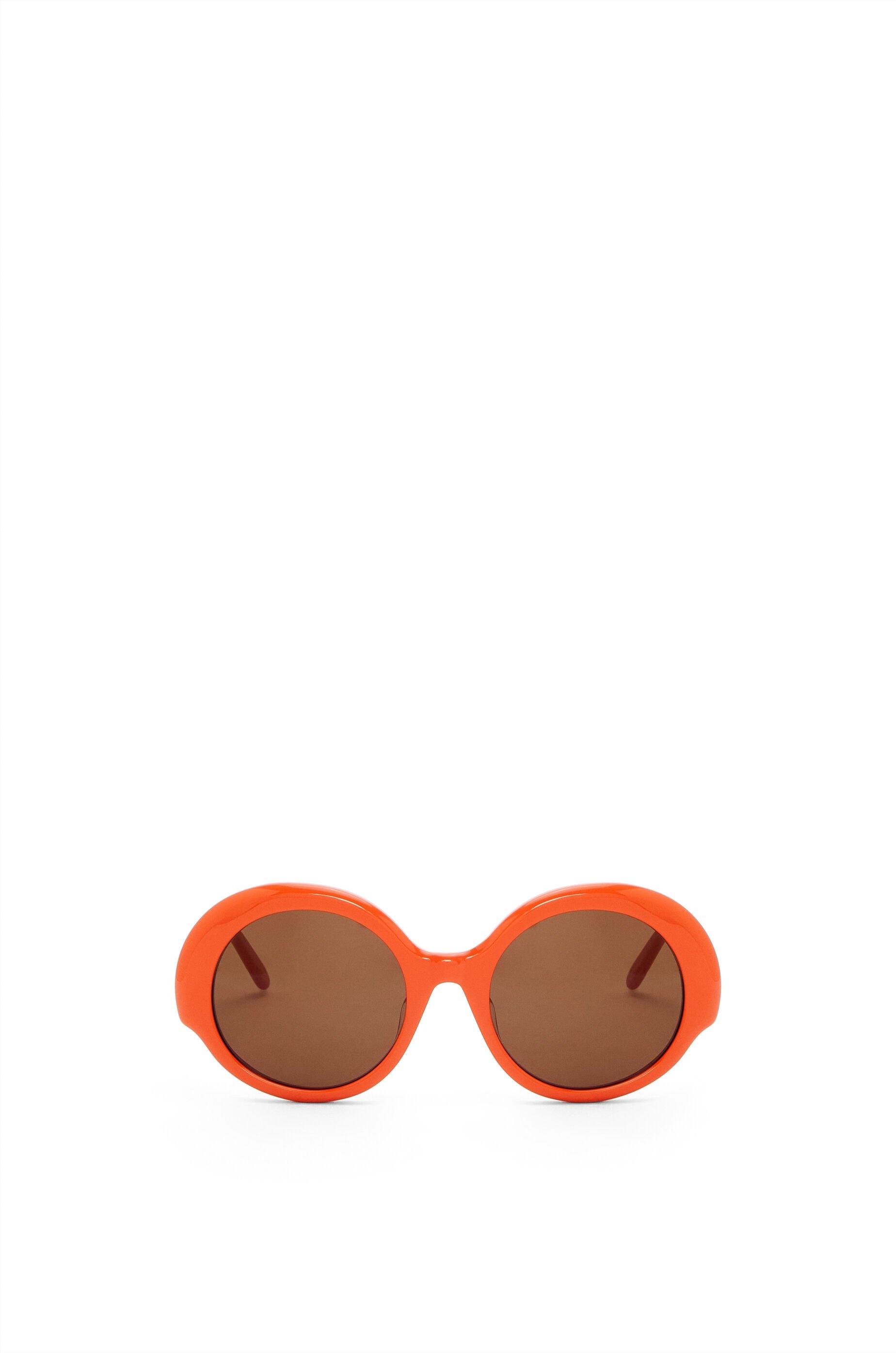 Round-shaped sunglasses in a slim acetate construction with LOEWE in a gold finish on the temple. - International fit - 100% UVA/UVB protection Details - Colour : Bright Orange - Main material : Acetate - Weight : 0.042 kg - Lens size (cm) : 5.2 - Lens size (inches) : 2.0 - Bridge size (cm) : 2.2 - Bridge size (inches) : 0.9 - Temple size (cm) : 14 - Temple size (inches) : 5.5 - Model ID : G735SUNX07 - CIL : - 0011061413 - Made in : Italy