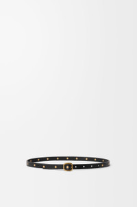 Rounded soft belt in classic calfskin with allover stud embellishments. - Rounded buckle - Pin buckle - 1.5cm wide - Five holes regulation - Engraved LOEWE Colour: Black/Gold Metallic colour: Gold Main material: Classic calf Weight: 0.06 kg Depth: 1.5 cm Made in: Spain