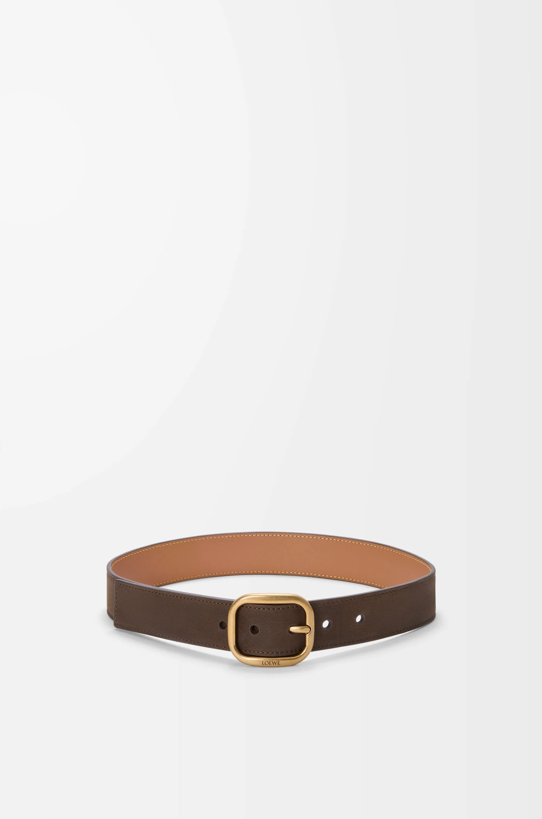 Rounded soft belt in nubuck. - Rounded buckle - Pin buckle - 3.5cm wide - Five holes regulation - Engraved LOEWE Colour: Tundra/Vintage Gold Metallic colour: Gold Main material: Nubuck Weight: 0.14 kg Depth: 3.5 cm Made in: Spain