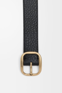 Rounded soft belt in supple grained calfskin. - Rounded buckle - Pin buckle - 3.5cm wide - Five holes regulation - Engraved LOEWE Colour: Black/Gold Metallic colour: Gold Main material: Supple Grained Calf Weight: 0.1 kg Depth: 3 cm Made in: Spain