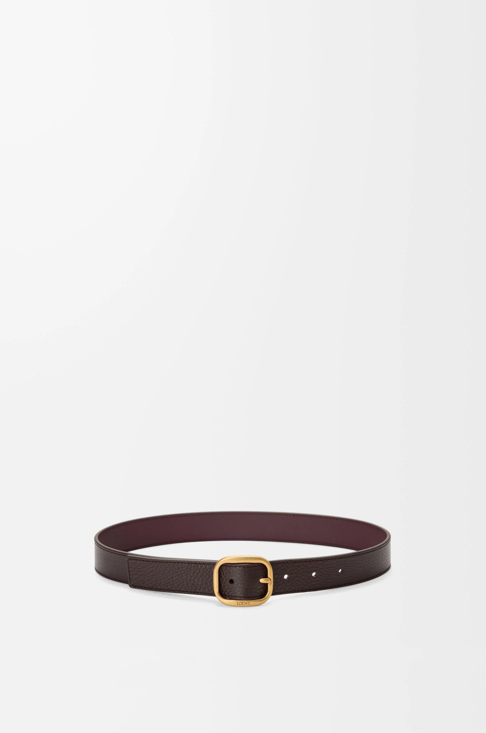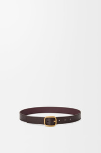 Rounded soft belt in supple grained calfskin. - Rounded buckle - Pin buckle - 3.5cm wide - Five holes regulation - Engraved LOEWE Colour: Oxblood/Vintage Gold Metallic colour: Gold Main material: Supple grained calf Weight: 0.1 kg Depth: 3 cm Made in: Spain