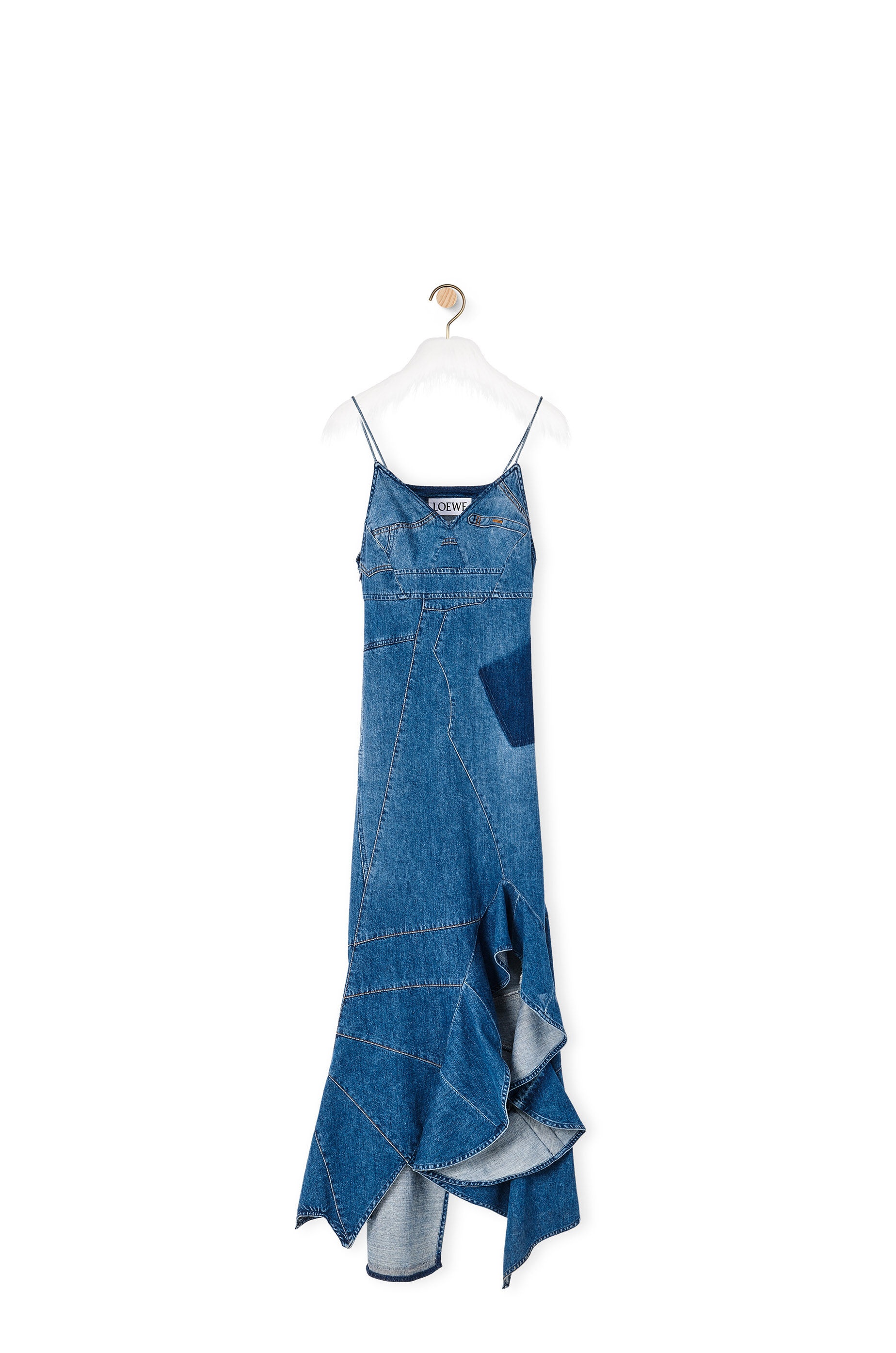 Denim midi dress with an asymmetric panel construction and a ruffled hem. With trompe l'oeil pockets and a single side pocket. - Fit and flare - Zip fastening Details - Colour: Blue Denim - Main material: Cotton - Weight : 0.59 kg - Model ID: S540Y13X08 - Made in: Italy