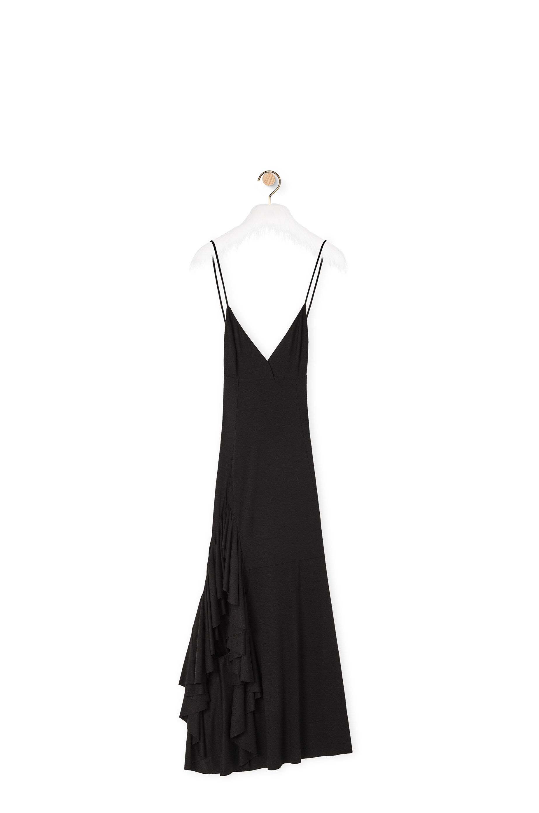 V-neck midi dress in viscose with skinny straps that cross over at the back and a ruffled hem and a cut-out allowing the dress to be worn two different ways. - Fitted at the bust and loose through the hips Details - Colour: Black - Main material: Viscose/Elastan - Weight : 0.39 kg - Model ID: S540Y09XDQ - Made in: France