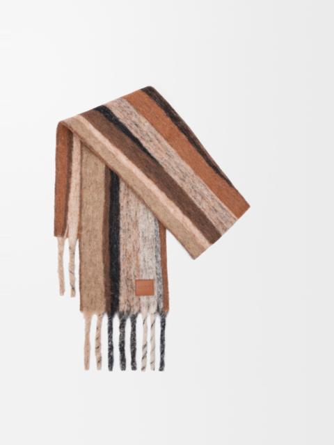 Scarf in medium-weight brushed alpaca and wool blend featuring multitone jacquard stripes. - 23cm x 185cm - Chunky fringed edges - LOEWE embossed leather patch placed on the corner Colour: Orange/Blue Main material: Alpaca/Wool Weight: 0.26 kg Height: 190 cm Width: 25 cm Made in: Italy