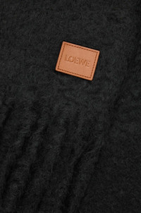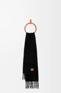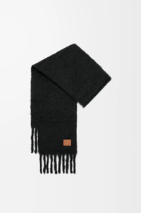Scarf crafted in medium-weight mohair and wool blend. - 23cm x 185 cm - Chunky fringed edges - LOEWE leather patch placed on the corner Colour: Black Main material: Mohair/Wool/Polyamide Weight: 0.2 kg Height: 185 cm Width: 22 cm Made in: Spain