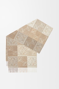 Scarf crafted in medium-weight double face wool and cashmere blend. - 38cm x 180cm - Reversible checkerboard pattern with allover Anagram jacquard - Fringed edges Details - Colour: White/Beige - Metallic colour: Gold - Main material: Wool/Cashmere - Weight: 0.199 kg - Height (cm): 38 - Width (cm): 180 - Height (inch): 15 - Width (inch): 70.9 - Model ID: F810487X17 - CIL: 0010478238 - Made in: United Kingdom
