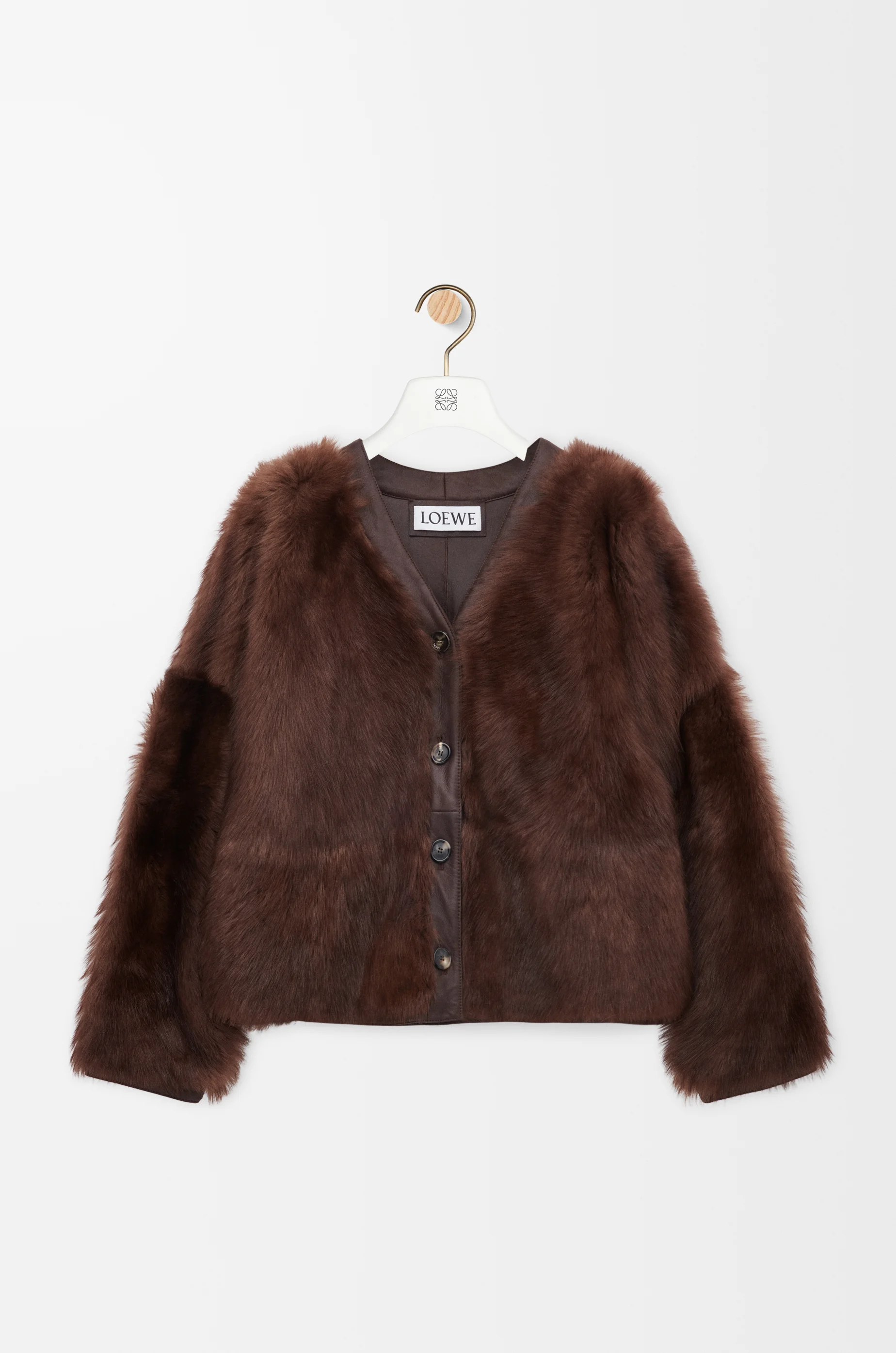 Cardigan in medium-weight shearling featuring dropped shoulders. - Relaxed fit, regular length - V-neck - Button front fastening - Seam pockets Colour: Brown Main material: Shearling Weight: 1.2 kg Made in: Italy Materials & care Main Material: 100% lambskin