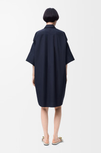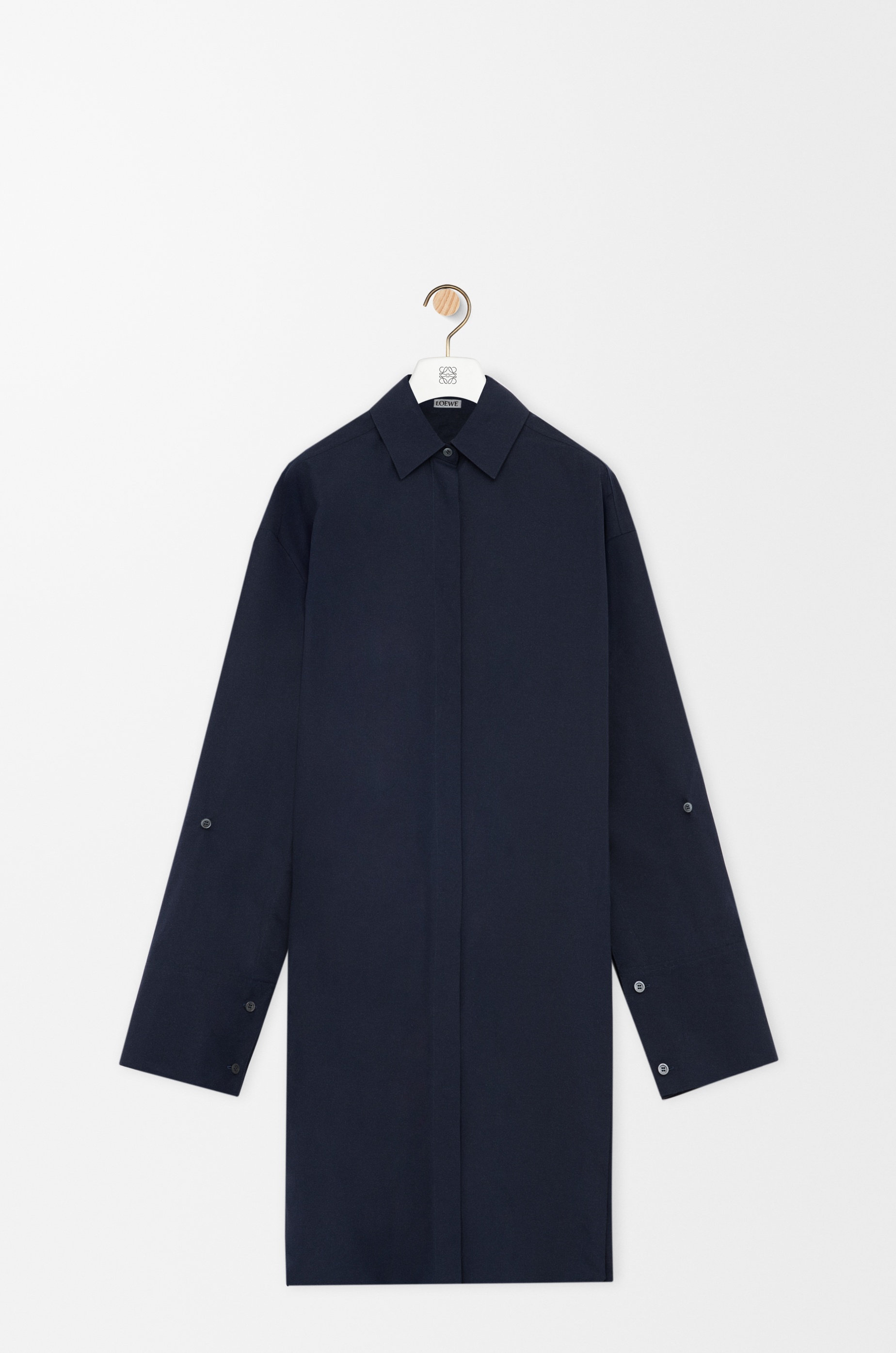 Dress in lightweight cotton poplin featuring adjustable sleeves and split sides with concealed button fastening. - Relaxed fit, knee length - Classic collar - Concealed button front fastening, buttoned cuffs - Box pleat at the back - Anagram embroidery placed at the front Colour: Navy Blue Main material: Cotton Weight: 0.35 kg Made in: Italy Materials & care Main Material: 100% cotton