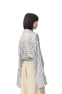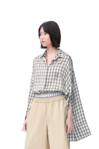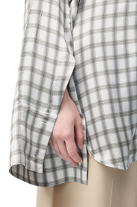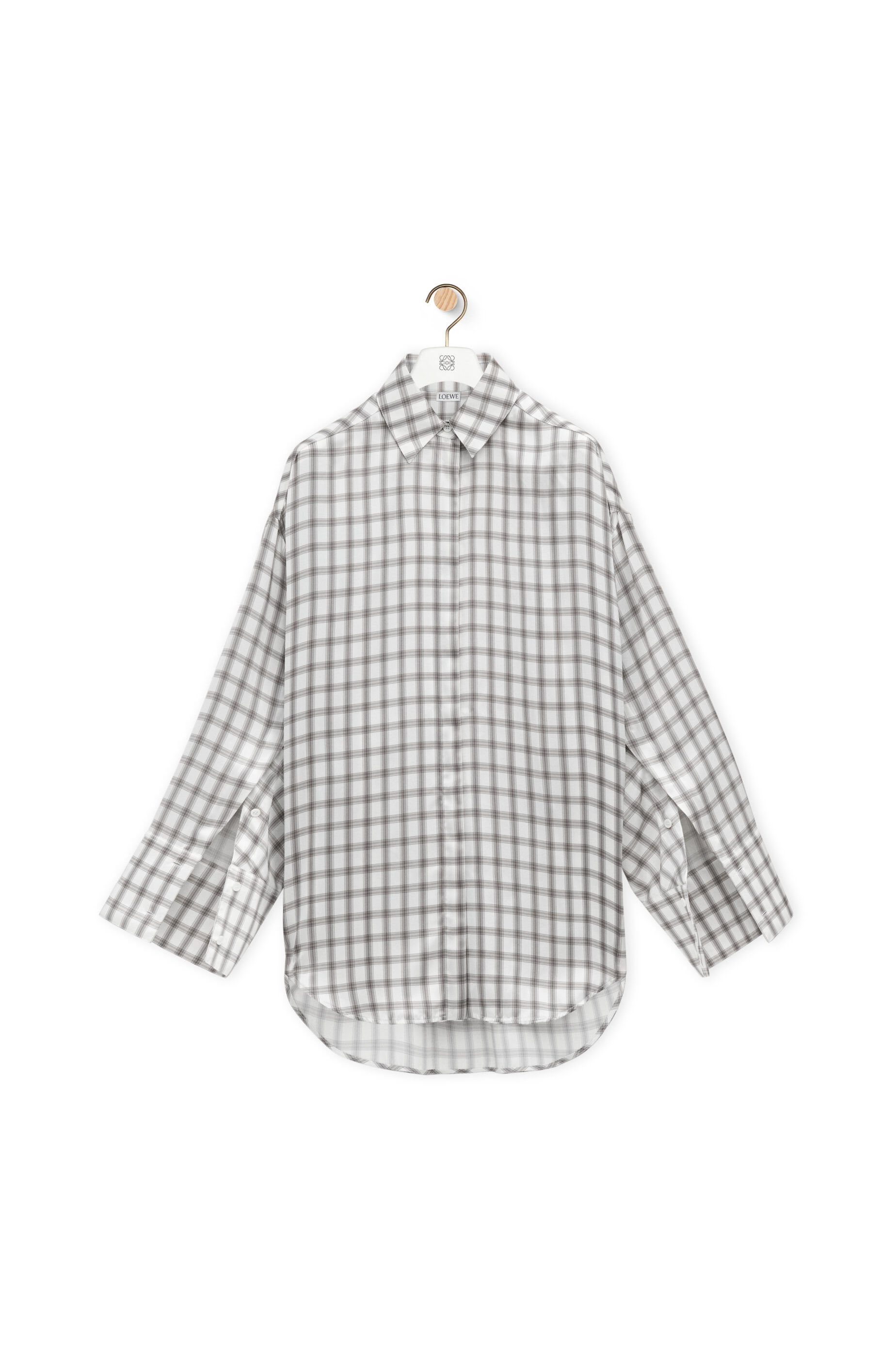 Shirt in lightweight check print silk satin featuring an adjustable silhouette via buttoned sides and sleeves. - Relaxed fit, long length - Classic collar - Concealed button front fastening, buttoned cuffs - Anagram embroidery placed at the back Details - Colour : White/Grey - Main material : Silk - Weight : 0.6 kg - Model ID : S359Y05XDG - Made in : Italy