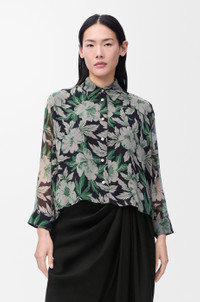 Shirt in lightweight silk crepon featuring an allover Hibiscus floral print and a trapeze silhouette. - Relaxed fit, short length - Classic collar - Button front fastening, buttoned cuffs - Partially lined - Anagram embroidery placed at the back of the lining Details - Colour : Multicolor - Main material : Silk - Weight : 0.1 kg - Model ID : S540Y05XBJ - Made in : Italy