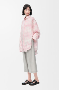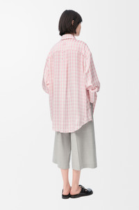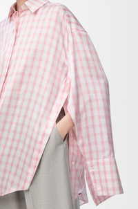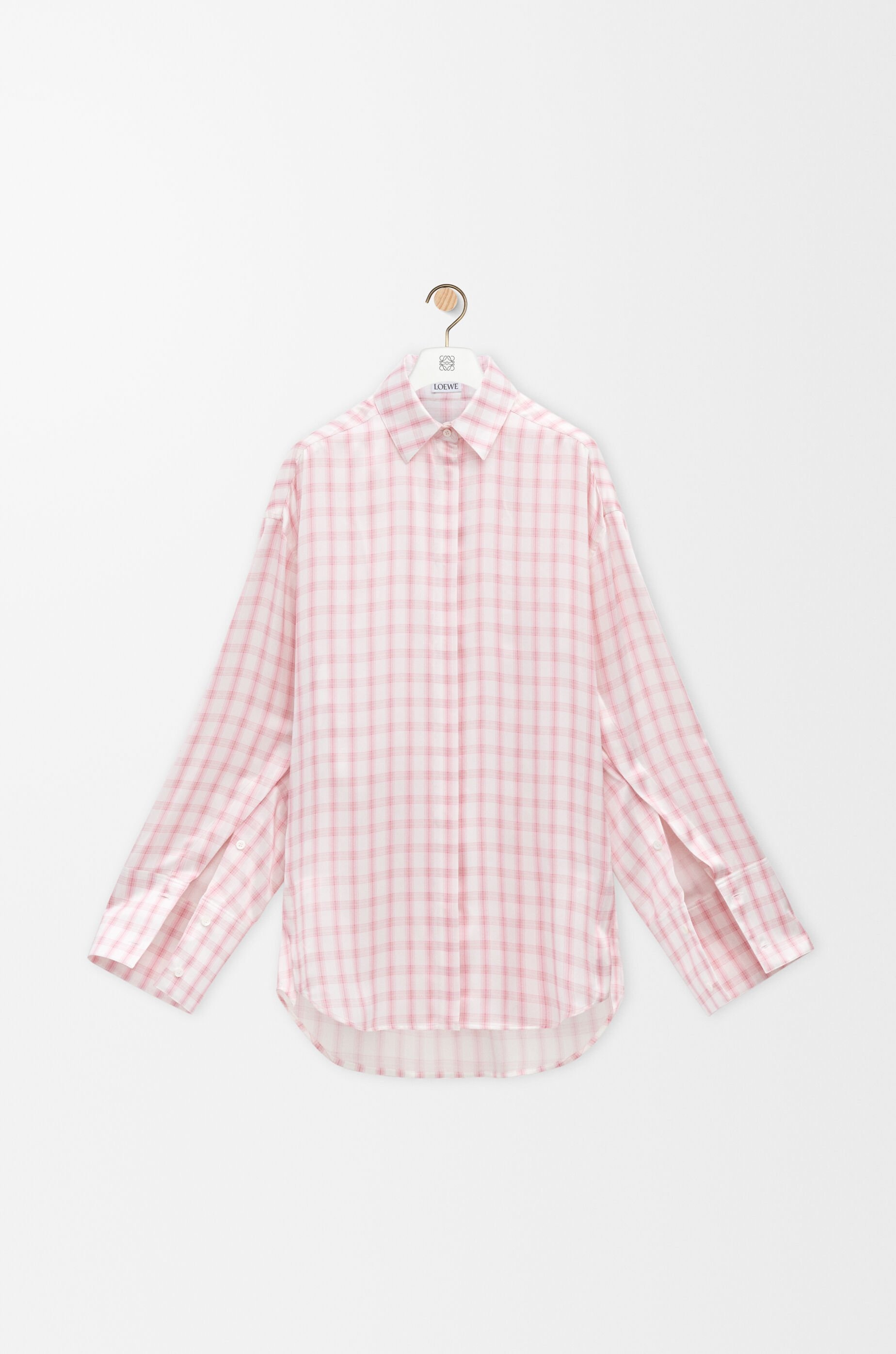 Shirt in lightweight check print silk satin featuring an adjustable silhouette via buttoned sides and sleeves. - Relaxed fit, long length - Classic collar - Concealed button front fastening, buttoned cuffs - Anagram embroidery placed at the back Details - Colour : White/Pink - Main material : Silk - Weight : 0.6 kg - Model ID : S359Y05XDG - Made in : Italy