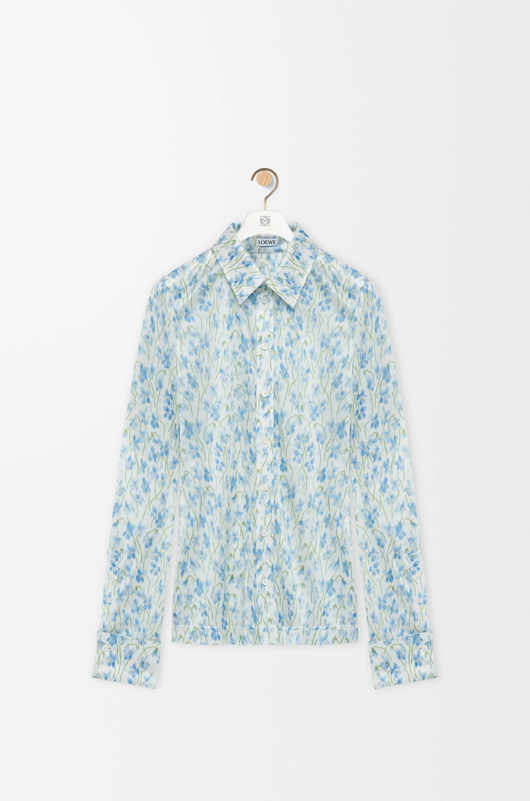 Shirt in lightweight fluid viscose and satin jersey featuring an allover floral digital print. - Slim fit, regular length - Classic collar - Button front fastening, buttoned French cuffs - Anagram embroidery placed at the back Colour: White/Blue Main material: Viscose Weight: 0.24 kg Made in: Italy Materials & care Main Material: 100% viscose