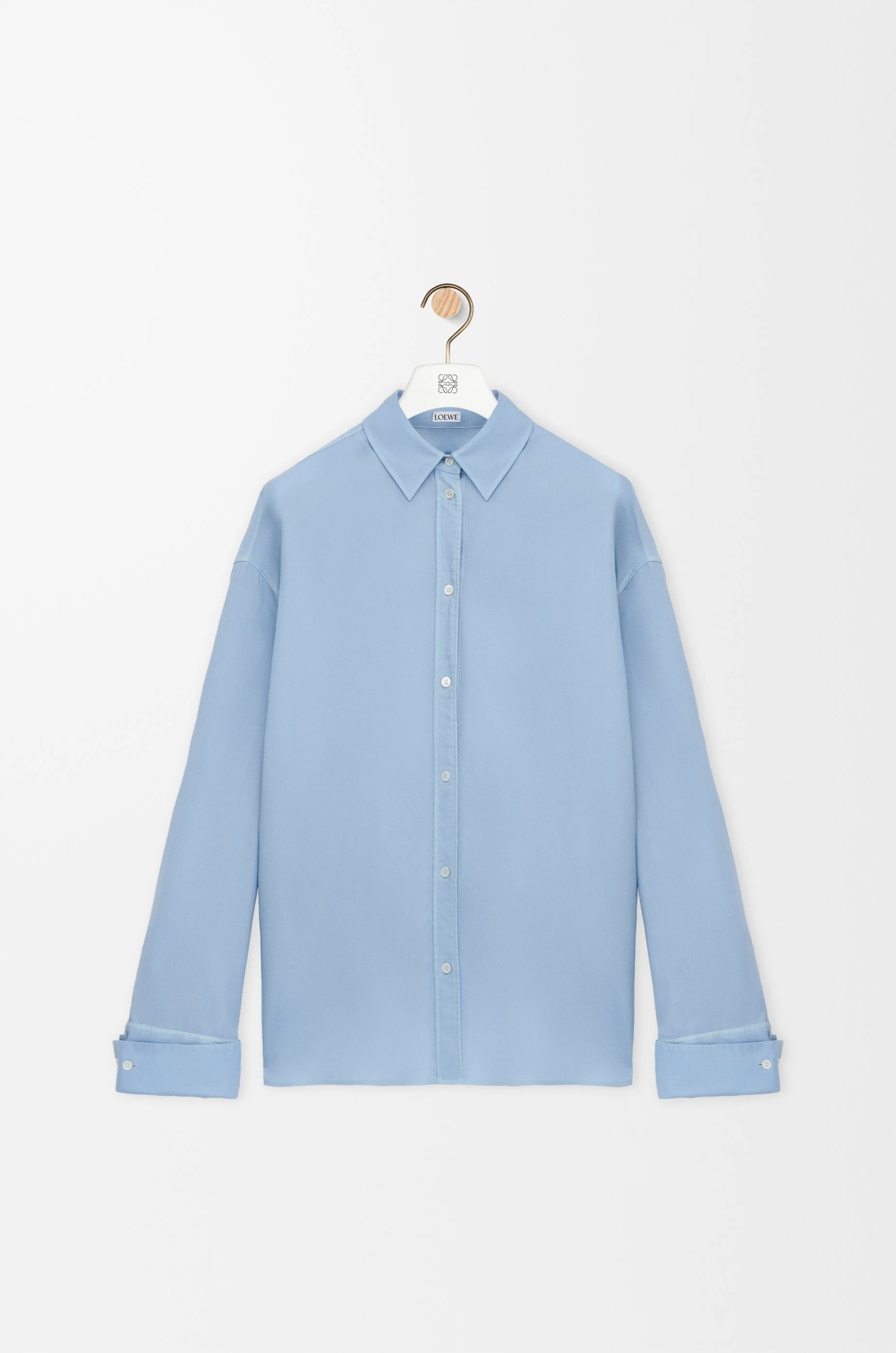 Shirt in lightweight fluid wool and silk featuring draping at the sides with an adjustable inside strap. - Relaxed fit, regular length - Classic collar - Button front fastening, buttoned French cuffs - Anagram embroidery placed at the back Colour: Blue Main material: Wool/silk Weight: 0.39 kg Made in: Italy Materials & care Main Material: 88% wool 12% silk