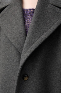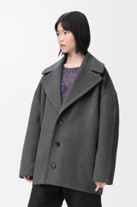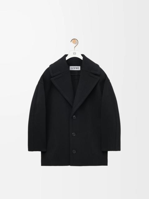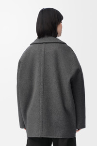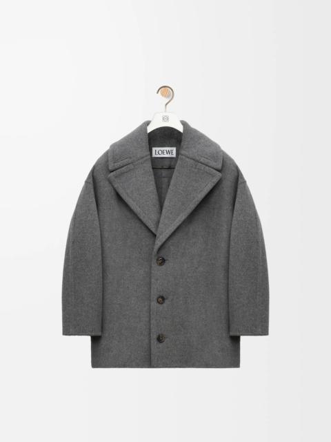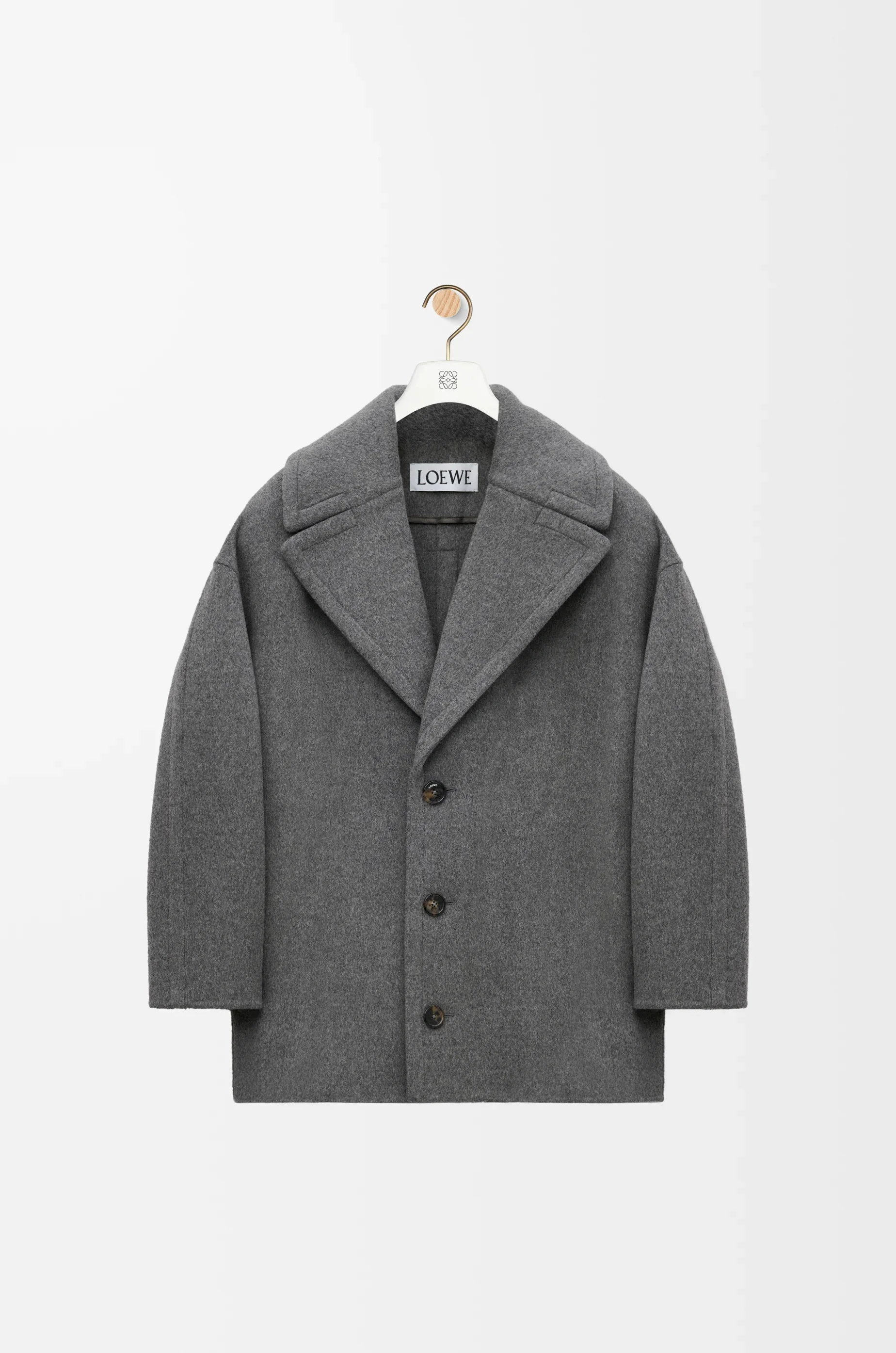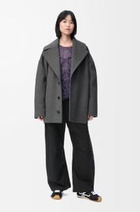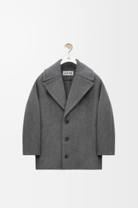 Coat in medium-weight wool featuring a cocoon silhouette with exaggerated lapels. - Relaxed fit, short length - Single-breasted - Button front fastening - Seam pockets - LOEWE Anagram embossed leather patch placed at the back Details - Colour : Grey Melange - Main material : Wool - Weight : 1.5 kg - Model ID : S359Y01XD8 - Made in : Italy