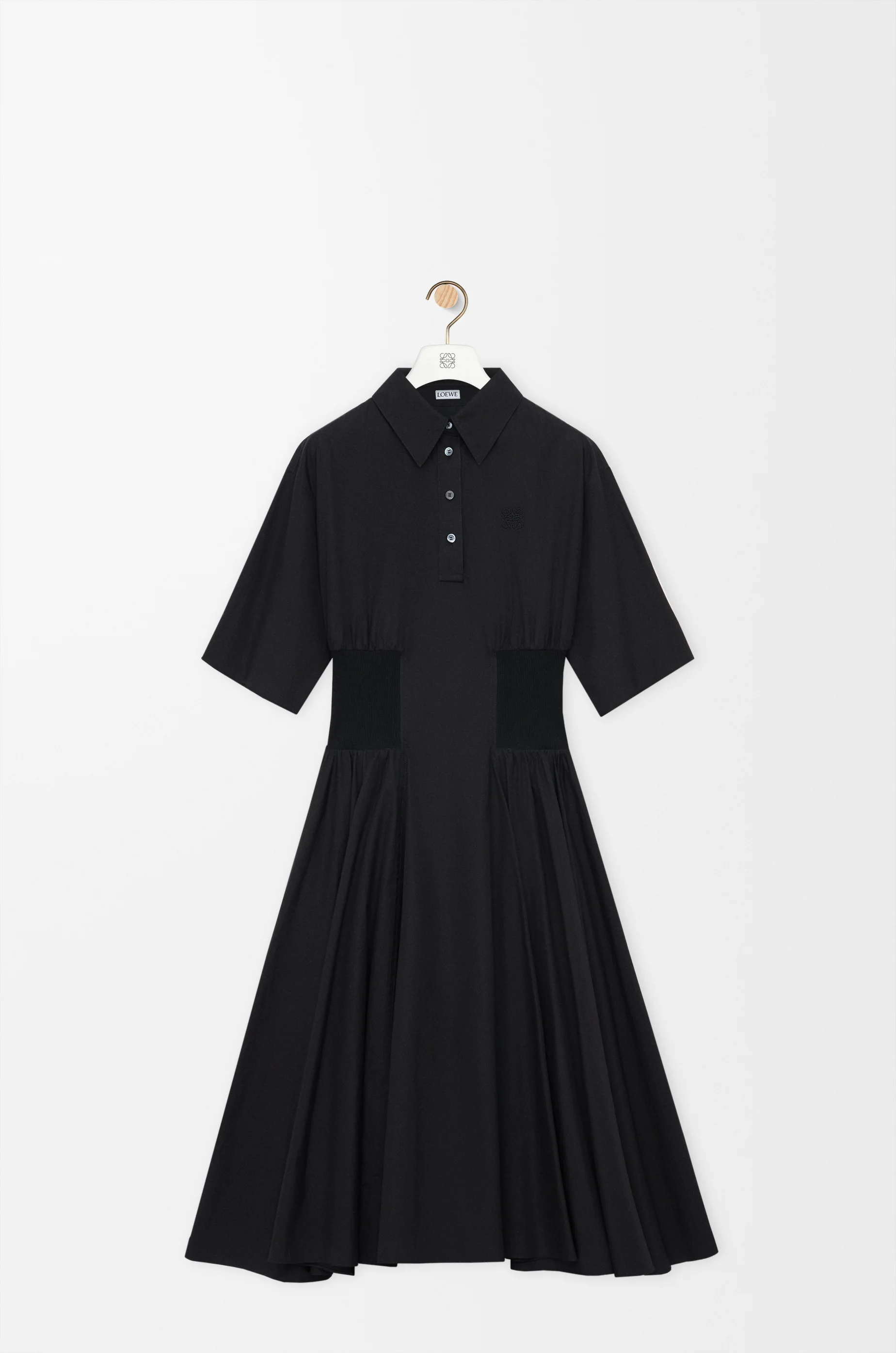 Dress in lightweight cotton poplin featuring a rib knit waist and a flared skirt. - Regular fit, knee length - Polo collar - Anagram embroidery placed on the chest Colour: Black Main material: Cotton Weight: 0.6 kg Made in: Italy Materials & care Main Material: 100% cotton