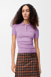 Sweater in ultra-lightweight cashmere and silk featuring a polo collar and gathered details at the sides. - Small fit, regular length - Jersey stitch - Ribbed cuffs and hem - Anagram embroidery placed on the chest Colour: Lilac Main material: Cashmere/Silk Weight: 0.14 kg Made in: Italy Materials & care Main Material: 67% cashmere 29% silk 3% polyamide 1% elastane