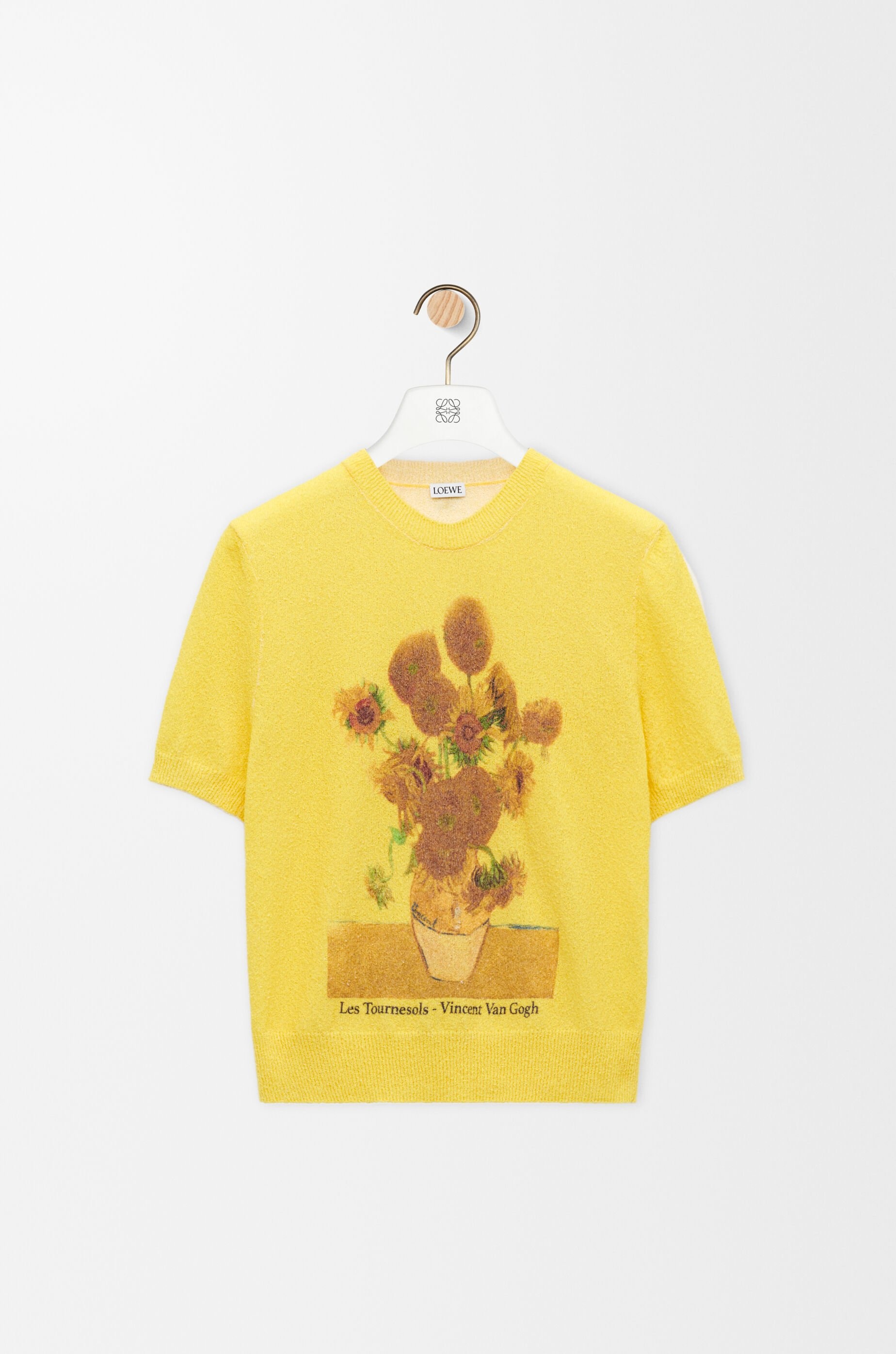 Sweater in lightweight textured cotton blend featuring a Van Gogh print at the front. - Small fit, short length - Jersey stitch with boucle-effect twisted yarn - Round neck - Ribbed collar, cuffs and hem - Anagram embroidery placed at the back Details - Colour : Yellow - Main material : Cotton/Polyamida - Weight : 0.2 kg - Model ID : S540Y55K32 - Made in : Italy