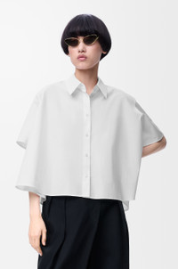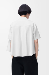Shirt in lightweight cotton poplin featuring a trapeze silhouette. - Relaxed fit, short length - Classic collar - Button front fastening - Box pleats at the back - Anagram embroidery placed on the chest Colour: White Main material: Cotton Weight: 0.3 kg Made in: Italy Materials & care Main Material: 100% cotton
