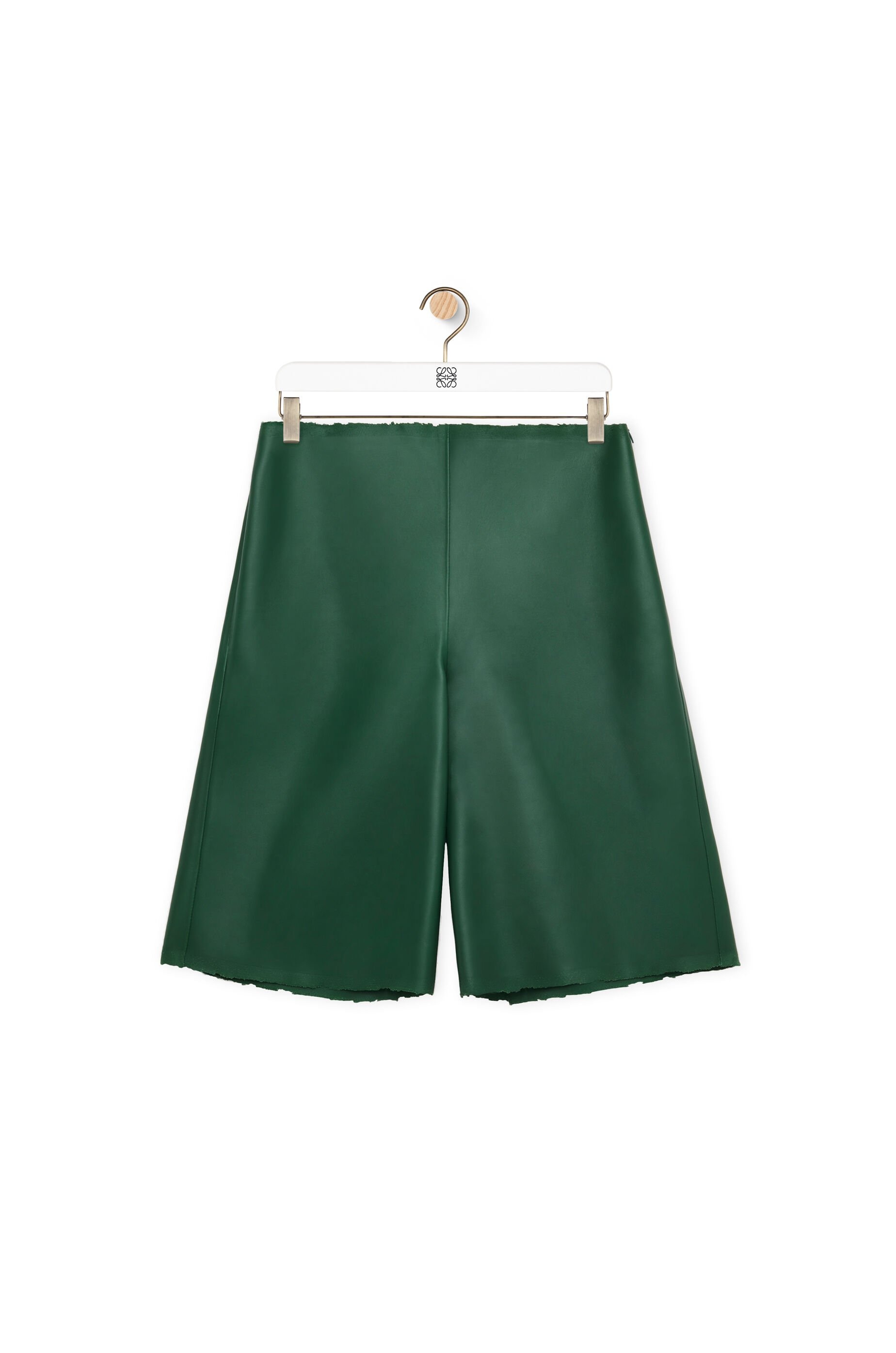 Shorts crafted in bonded semi-matte nappa lambskin. - Regular fit - Knee length - Mid waist - Straight leg - Chewed edges effect at the waist and hem - Side zip fastening - Seam pocket on one side Details - Colour: Forest Green - Main material: Nappa - Weight: 0.5 kg - Model ID: S540Y54L91 - Made in: Italy