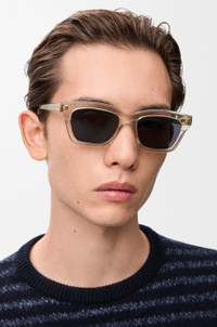 Rectangle-shaped sunglasses in a slim acetate construction. - Universal fit - UVA/UVB protection - Gold-finish metal LOEWE Colour: Champagne Main material: Acetate Made in: Italy