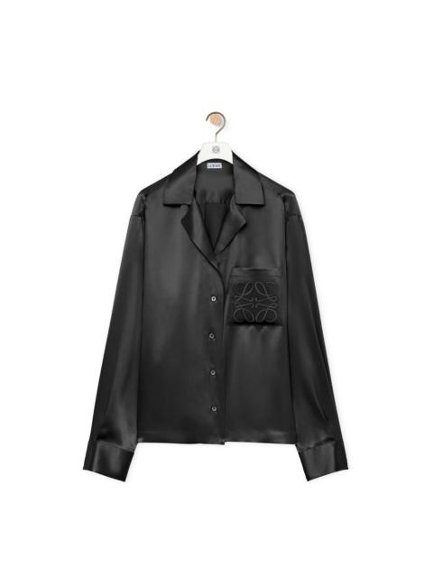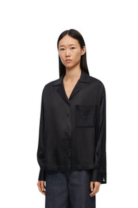 Blouse in medium-weight silk satin featuring slits on the sides. - Relaxed fit, regular length - Notch lapels - LOEWE engraved donut cufflinks - Button front fastening - Box pleat at the back - Anagram embroidered patch pocket placed on the chest Details - Colour : Black - Main material : Silk - Weight : 0.3 kg - Model ID : S359Y05X96 - Made in : Italy