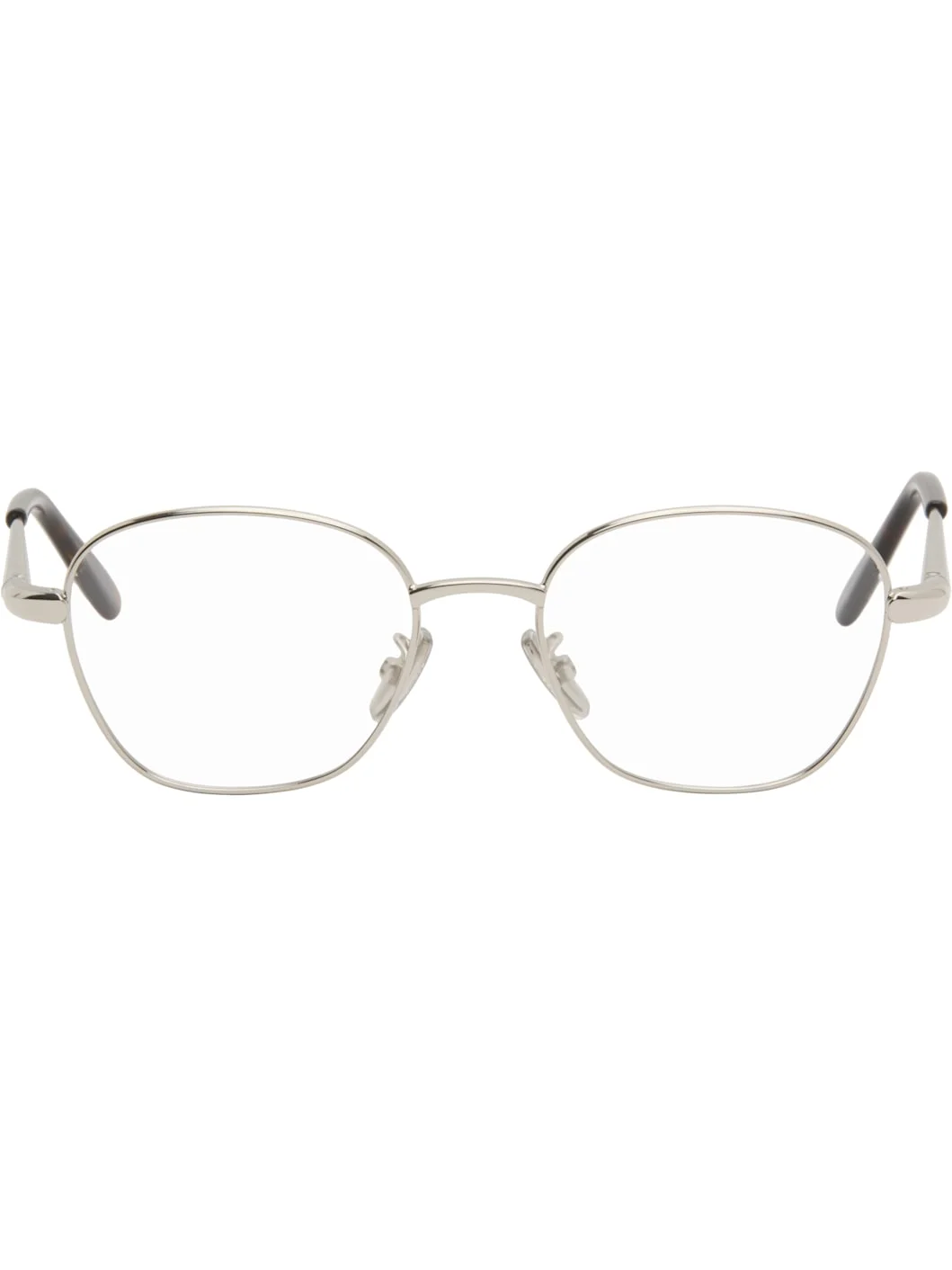 Square metal-frame optical glasses. · Adjustable metal nose pads · Logo engraved at temples · Tortoiseshell acetate temple tips · Includes pouch · Size: 50.18 140 Supplier color: Shiny palladium Metal, acetate. Made in Italy 252677F004001
