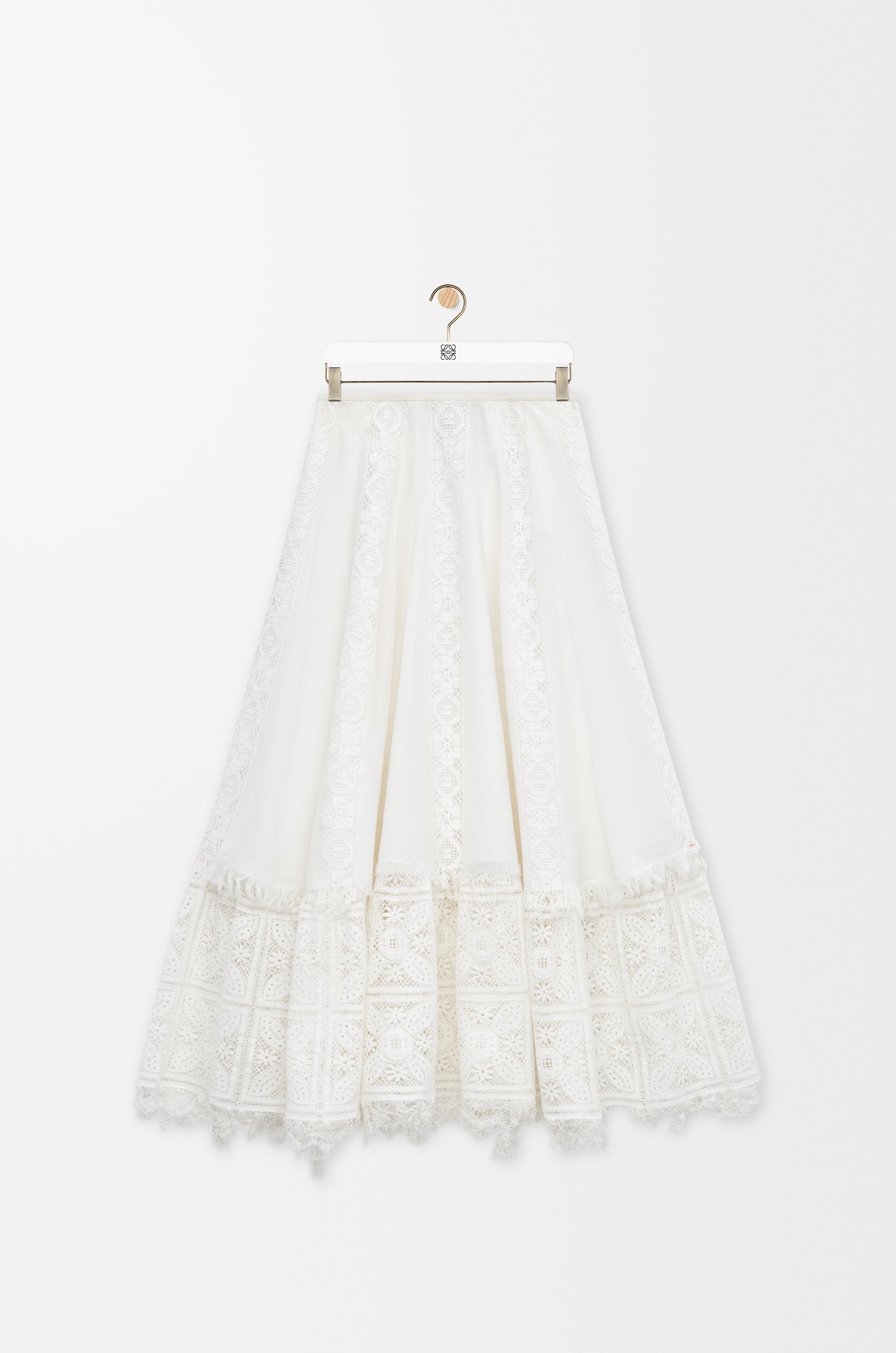 Skirt in lightweight cotton and silk featuring lace inserts, a double layer construction and a frayed hem. - Regular fit, mid length - Mid waist - Side zip fastening - Fully lined Colour: White Main material: Cotton/Silk Weight: 0.5 kg