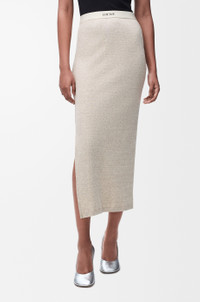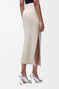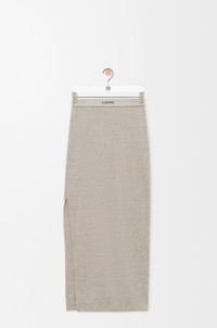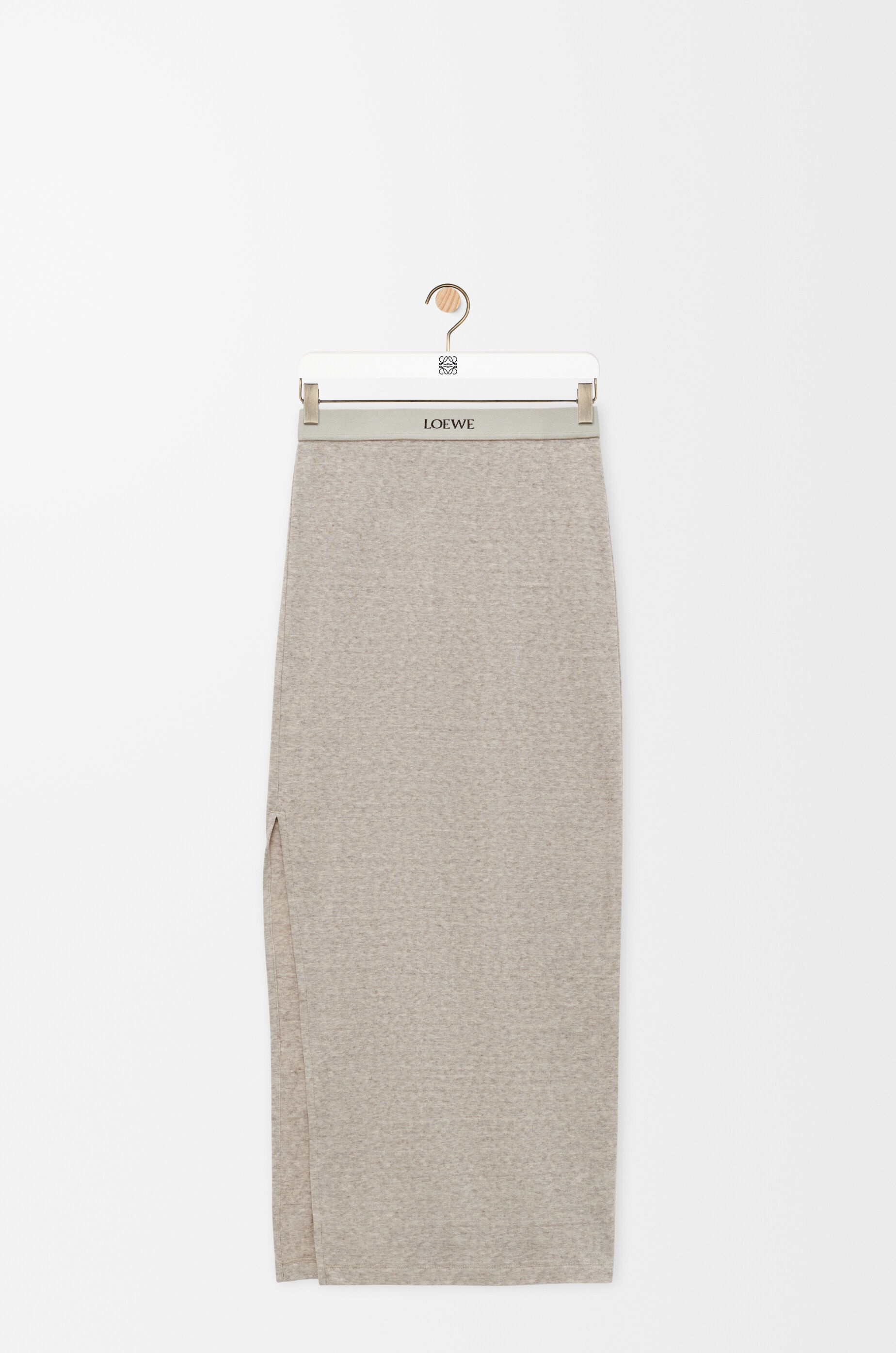 Skirt in lightweight cotton and wool featuring an elasticated LOEWE jacquard waistband. - Slim fit, mid length - Mid waist - Side slit Details - Colour : Beige Melange - Main material : Cotton/Wool - Weight : 0.13 kg - Model ID : S359Y1HX04 - Made in : Portugal