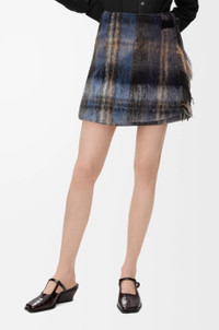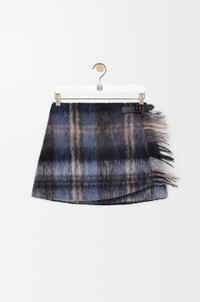 Skirt in medium-weight mohair and wool blend featuring an allover check pattern and a wrap construction with a leather belt detail and fringes at the front. - Regular fit, short length - Mid waist - Concealed button fastening - Fully lined Colour: Blue/Multicolor Main material: Mohair/Wool/Polyamide Weight: 0.4 kg Made in: Italy Materials & care Main Material: 64% mohair 31% wool 5% polyamide