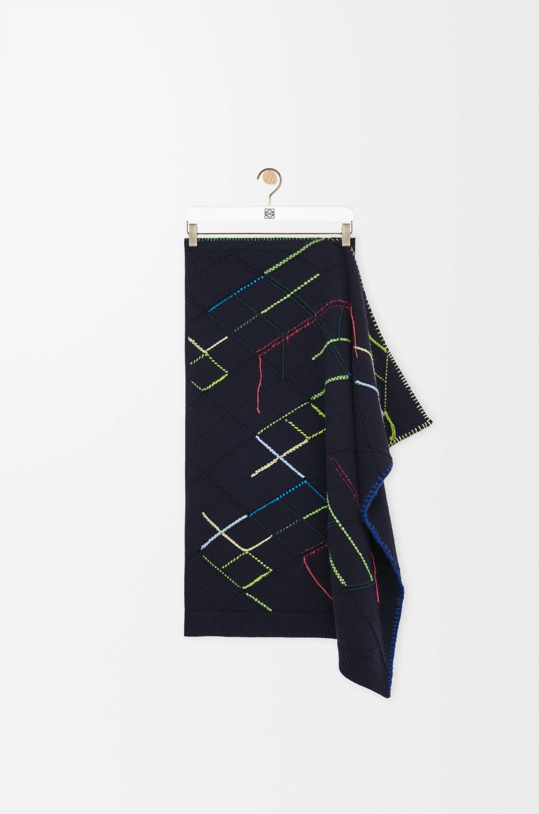 Skirt in medium-weight wool featuring an asymmetric silhouette with a loose panel on one side and Argyle-inspired hand-embroideries. - Regular fit, knee length - Mid waist - Ribbed waist Colour: Dark Navy Blue Main material: Wool Weight: 0.73 kg Made in: Italy Materials & care Main Material: 100% wool