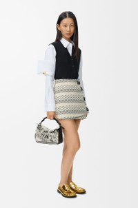 Skirt in medium-weight wool blend jacquard inspired by Anni Albers's "Fringes" tapestry featuring a wrap construction with a leather belt detail and fringes at the front. This skirt is part of the LOEWE x Albers collection. - Regular fit, short length - Mid waist - Concealed button fastening - Fully lined Colour: Black/White Main material: Wool/Viscose/Polyamide Weight: 0.4 kg Made in: Italy Materials & care Main Material: 69% wool 26% viscose 4% mohair 1% polyamide