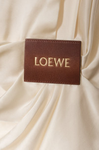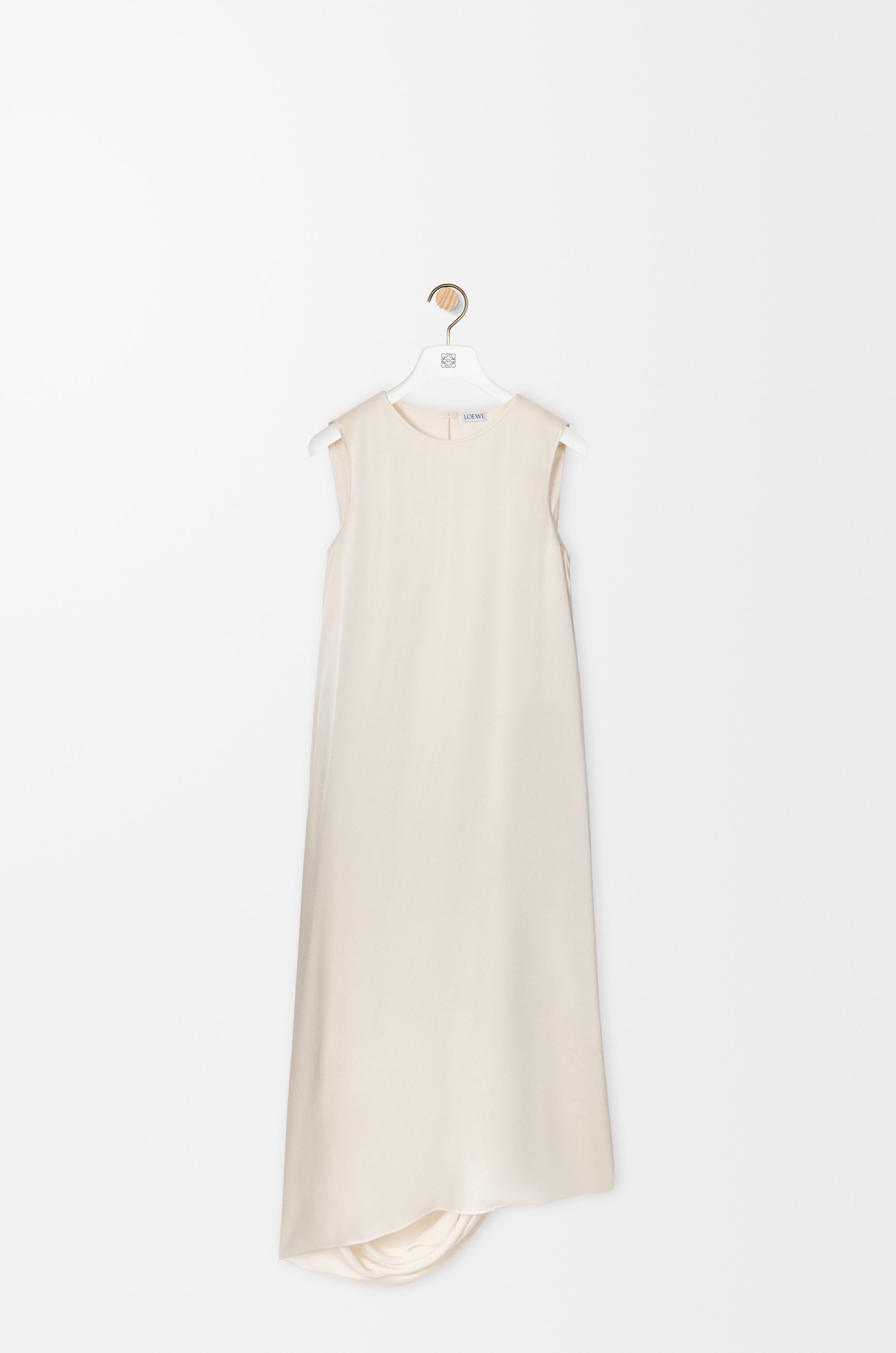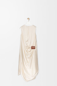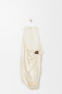 Dress in lightweight washed silk satin featuring asymmetric hand-gathered draping at the back. - Regular fit, mid length - Round neck - Rear hook and zip fastening, seam pockets - Side slit - Fully lined - LOEWE embossed leather patch placed at the back Colour: Ivory Main material: Silk Weight: 0.2 kg Made in: France Materials & care Main Material: 100% silk