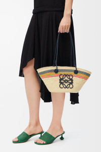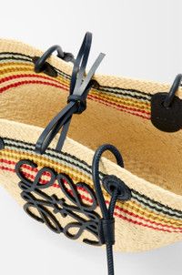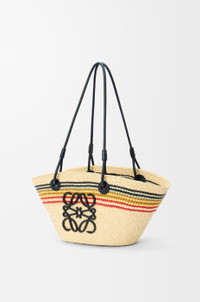 The Anagram basket has a classic lightweight body with tubular calfskin straps and an embroidered calfskin Anagram. This small striped version is made in Spain using mixed colour iraca palm leaves cultivated and handwoven by artisans in Colombia. - Shoulder or hand carry - Top handles - Calfskin tie closure - Due to its handcrafted nature, sizes may differ slightly, making every item unique. Colour: Natural/Multicolor Main material: Iraca Palm/Calf Handle drop: 25 cm Weight: 0.19 kg Height: 17 cm Width: 38 cm Depth: 13 cm Made in: Spain