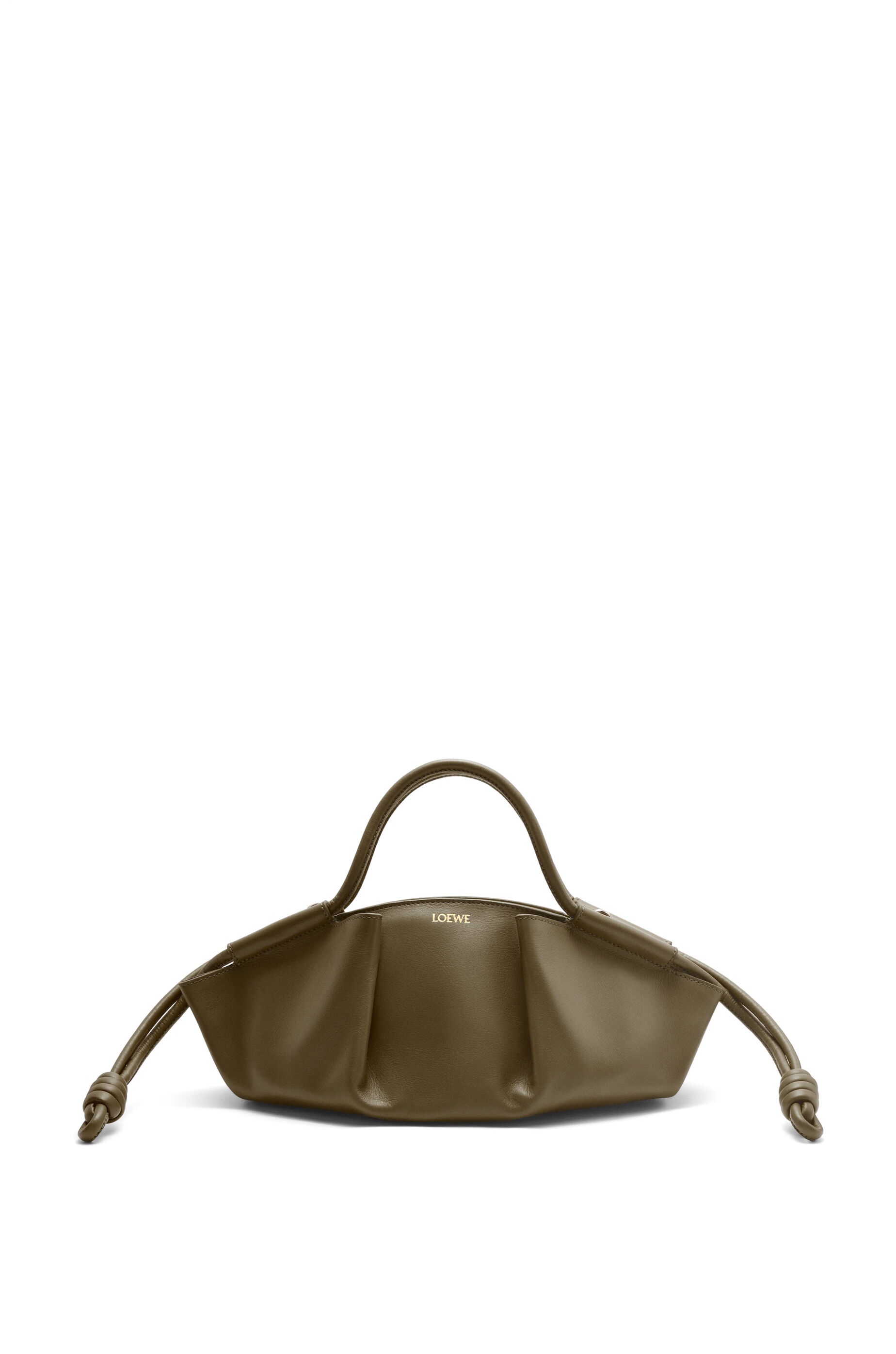 The Paseo is exquisitely crafted with a pure and elegant silhouette. The supple and ultra-light construction is enhanced by a distinctive, softly pleated structure with handles threaded through the body of the bag. This small version is crafted in shiny nappa calfskin. - Hand or shoulder carry - Detachable and adjustable shoulder strap - Concealed zip top fastening - Gold suede lining - Gold foil embossed LOEWE Details - Colour: Dark Khaki Green - Metallic colour: Gold - Main material: Shiny Nappa Calf - Strap length: 88 - 108 cm - Handle drop: 9 cm - Weight: 0.51 kg - Height (cm): 11.5 - Width (cm): 35 - Depth (cm): 21 - Height (inch): 4.5 - Width (inch): 13.8 - Depth (inch): 8.3 - Model ID: A709P48X02 - CIL: 0010852028 - Made in: Spain