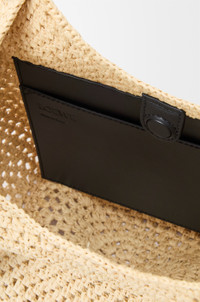 The Punch Hole hobo combines a soft handwoven raffia body with raw edge belt handles and functional details. It is made in Spain using raffia palm leaves cultivated and handwoven by artisans in Madagascar. - Shoulder or hand carry - Adjustable handles - Magnetic closure - One internal calfskin slip pocket - Gold embossed LOEWE Colour: Natural Metallic colour: Gold Main material: Raffia/Calf Strap length: 15 - 77 cm Strap drop: 12 - 50 cm Weight: 0.68 kg Height: 43 cm Width: 40 cm Depth: 40 cm Made in: Spain