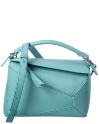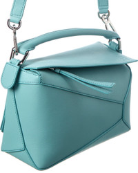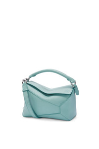 The Puzzle bag is the debut bag for LOEWE by Creative Director Jonathan Anderson. A cuboid shape and precise cutting technique create Puzzle’s distinctive geometric lines. This small version is crafted in classic calfskin. - Shoulder, crossbody or hand carry - Detachable and adjustable strap, top handle - Zip closure with calfskin pull - One external zip rear pocket, one internal slip pocket - Herringbone cotton canvas lining - Embossed Anagram Details - Colour : Water - Metallic colour : Palladium - Main material : Classic Calf - Strap length : 80.5 - 115.5 cm - Strap Drop : 40 - 58 cm - Handle drop : 7 cm - Weight : 0.52 kg - Height (cm) : 16.5 - Width (cm) : 24 - Depth (cm) : 10.5 - Height (inch) : 6.5 - Width (inch) : 9.4 - Depth (inch) : 4.1 - Model ID : A510P60X41 - CIL : - 0011190618 - Made in : Spain
